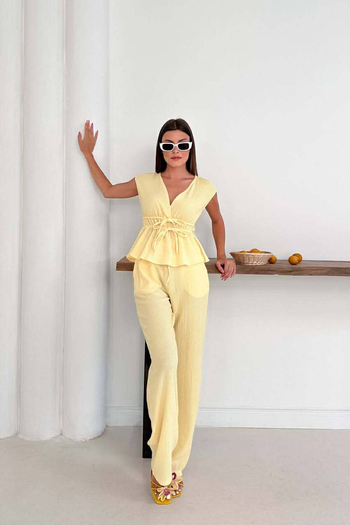 ONE COLOR TANK TOP+TROUSERS WOMEN SET YELLOW/E VERDHE