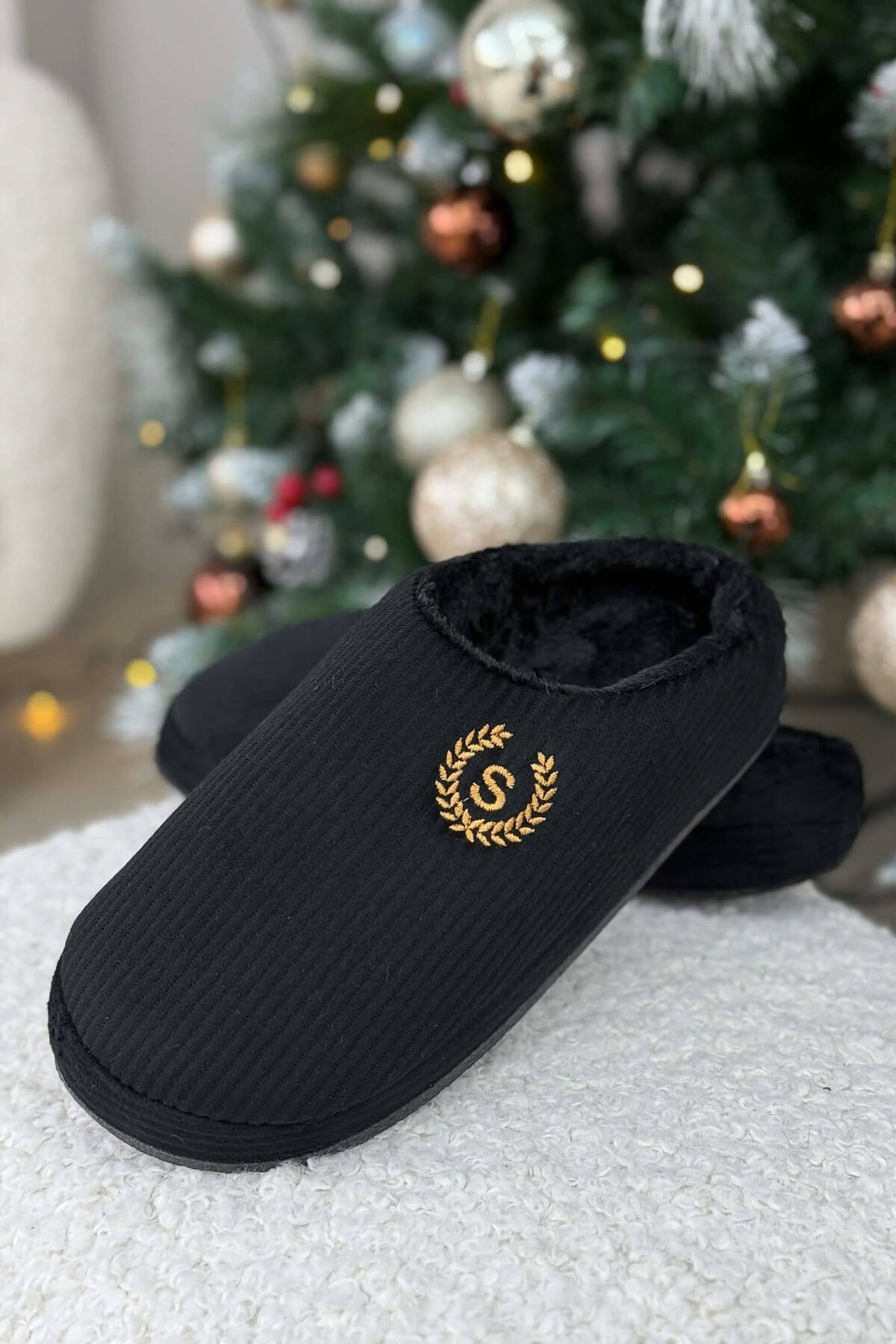 ONE COLOR TEDDY LINED MAN SLIPPERS BLACK/ E ZEZE