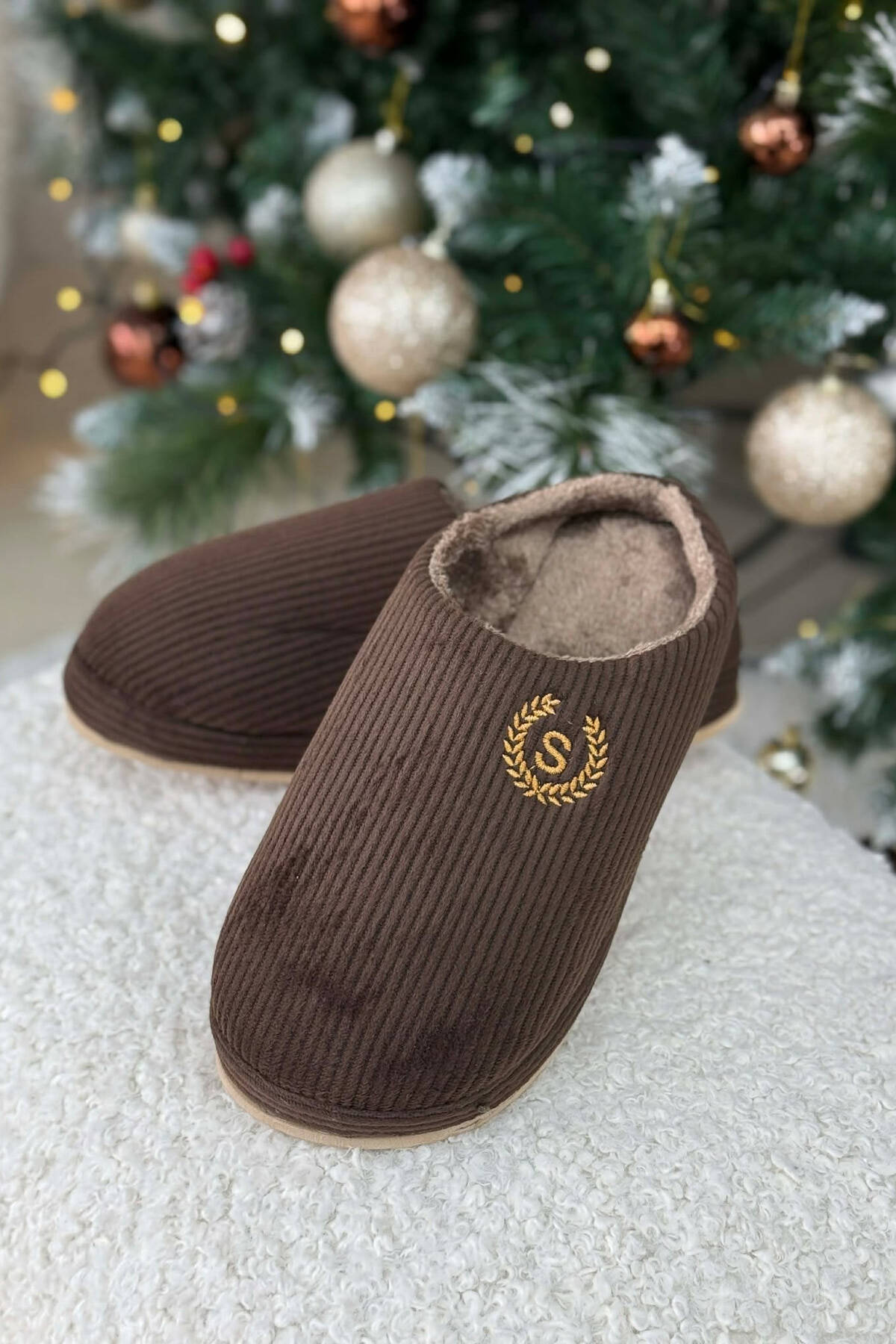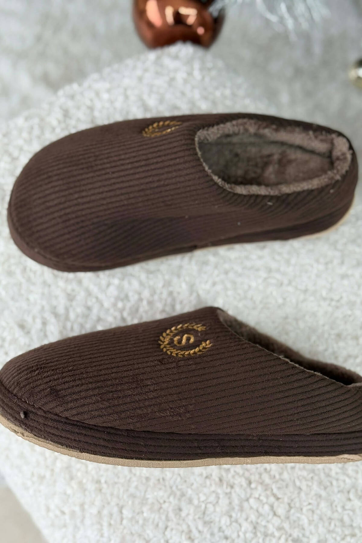 ONE COLOR TEDDY LINED MAN SLIPPERS BROWN/KAFE