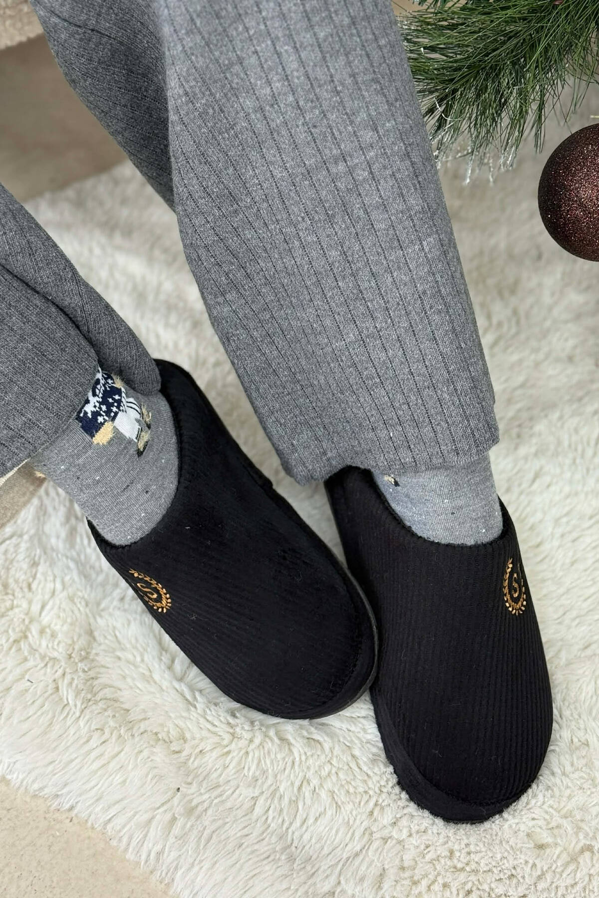 ONE COLOR TEDDY LINED WOMEN SLIPPERS BLACK/ E ZEZE