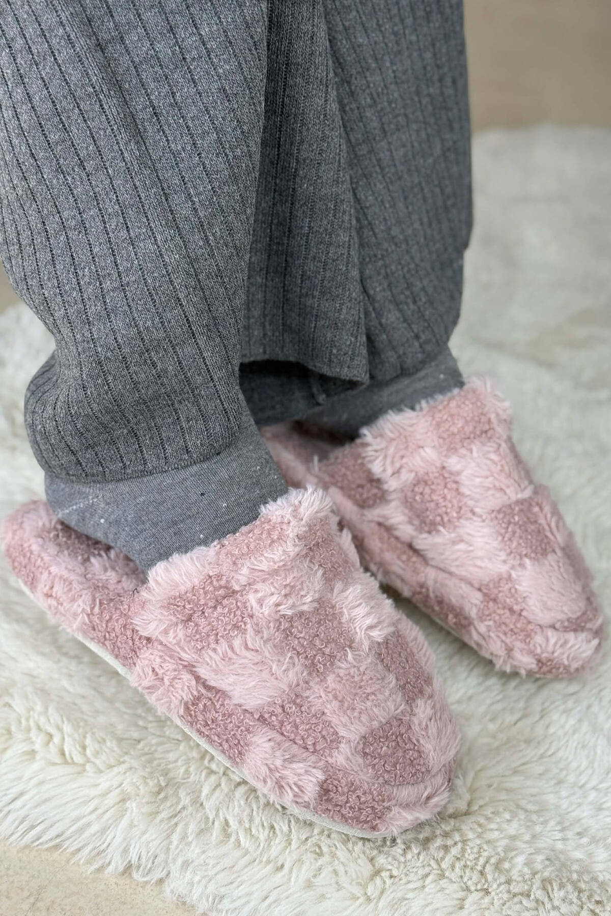 ONE COLOR TEDDY SQUARES WOMEN SLIPPERS POWDER/PUDER