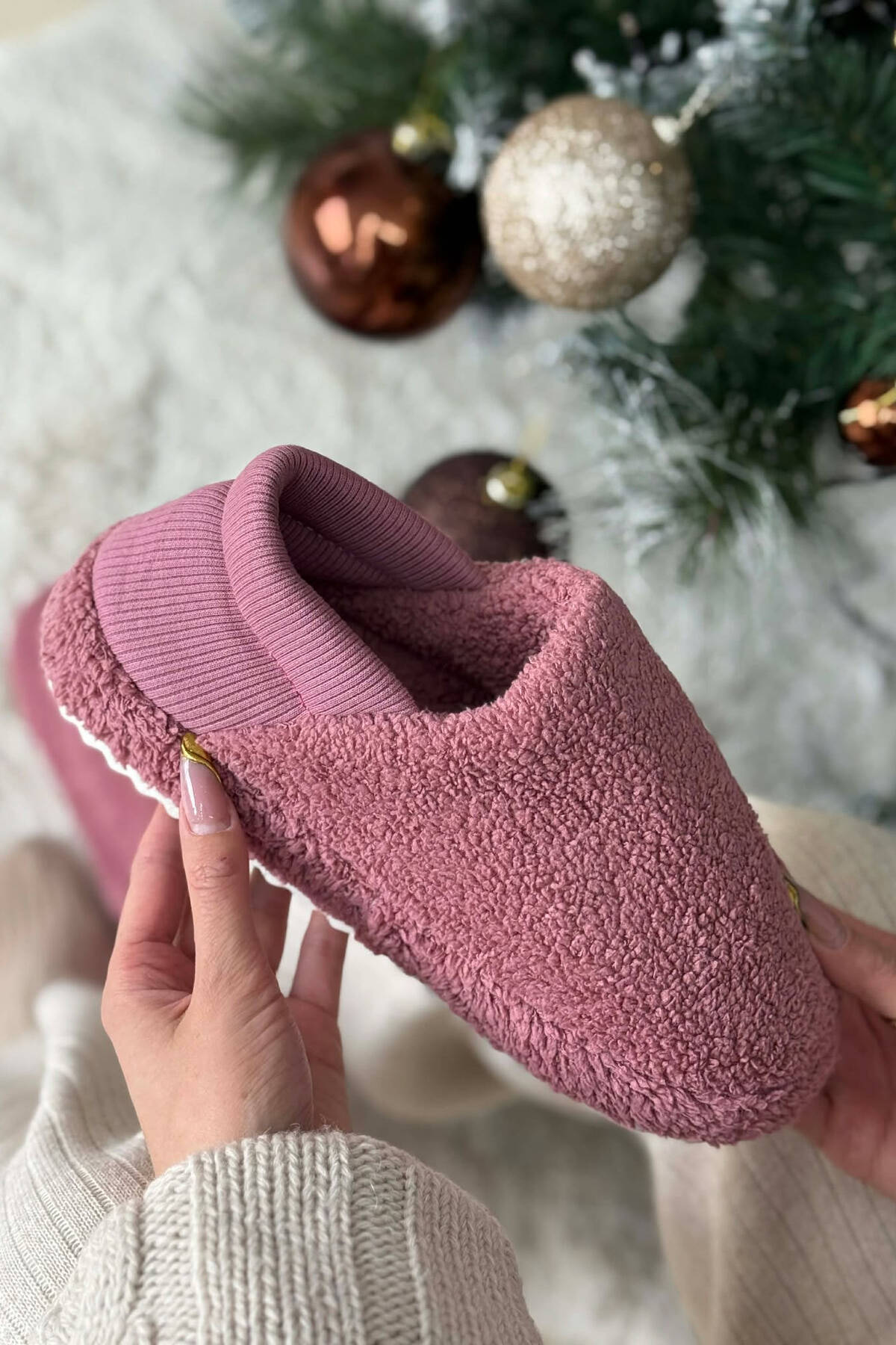 ONE COLOR TEDDY SQUARES WOMEN SLIPPERS POWDER/PUDER