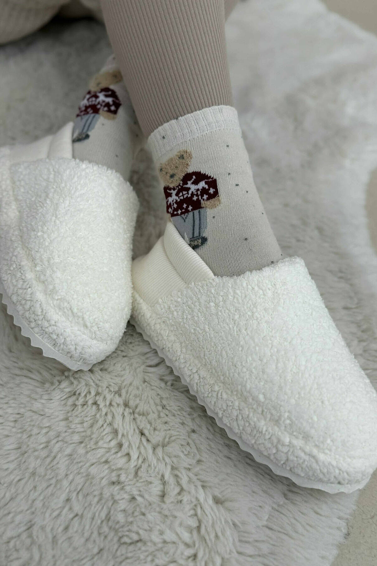 ONE COLOR TEDDY WOMEN SLIPPERS WHITE-E BARDHE