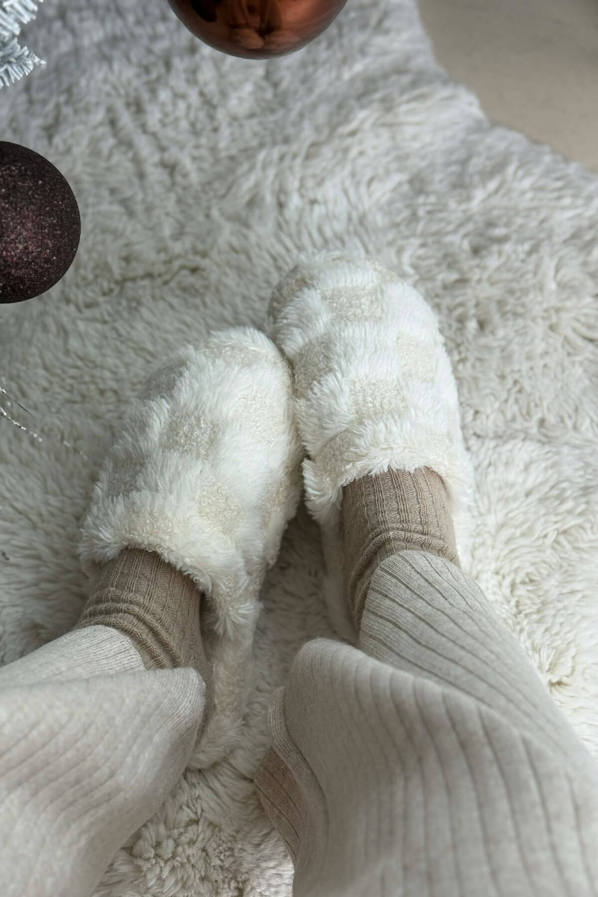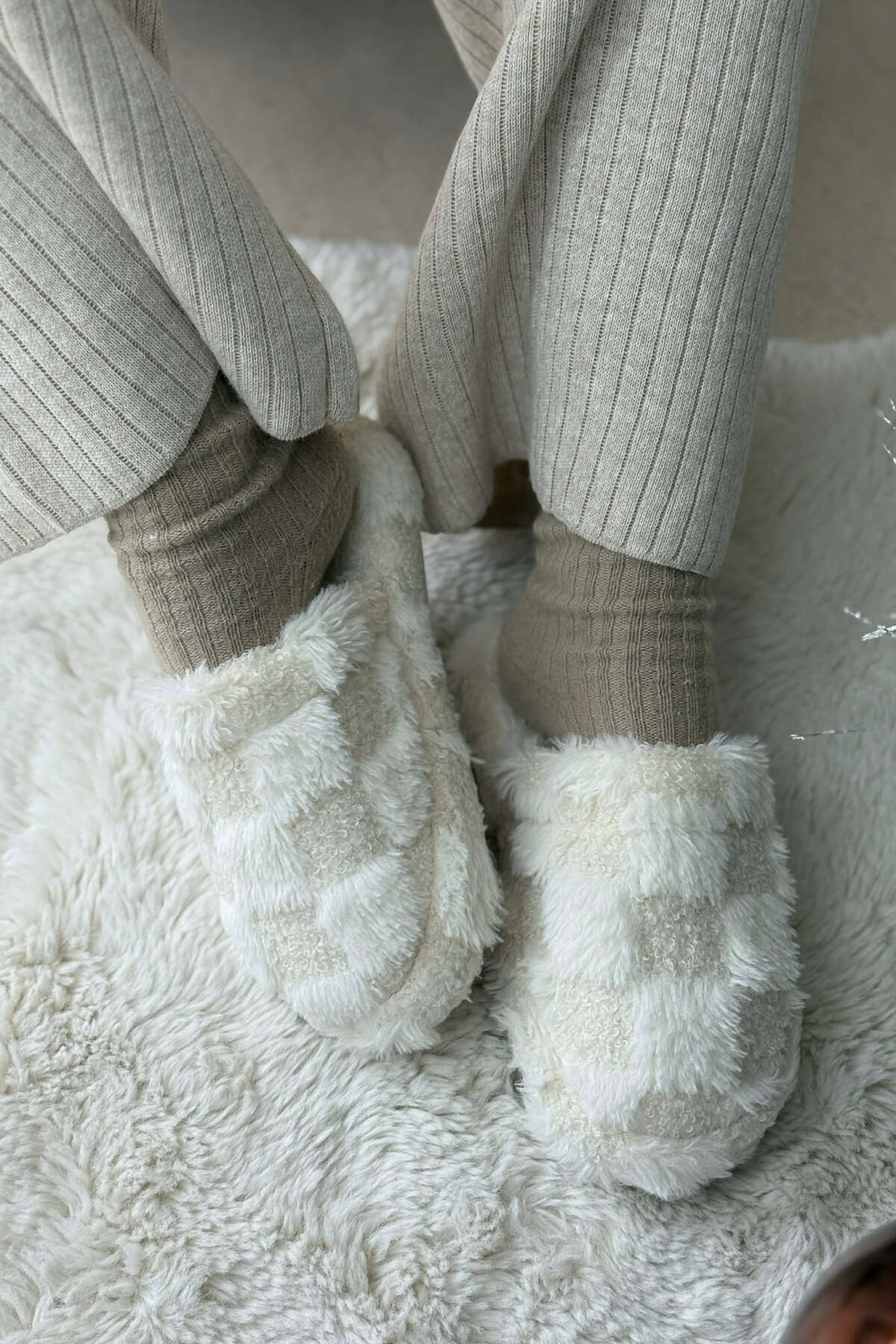 ONE COLOR TEDDY SQUARES WOMEN SLIPPERS WHITE-E BARDHE