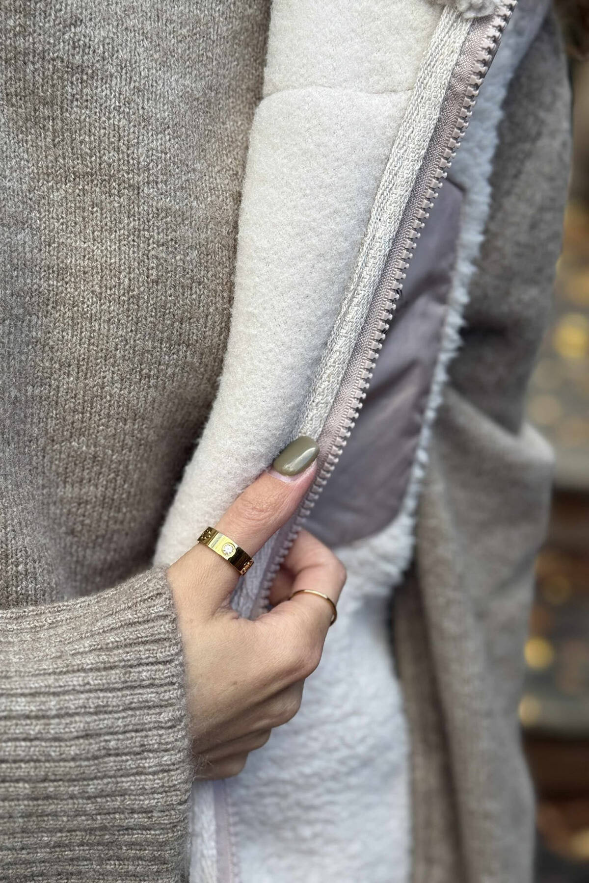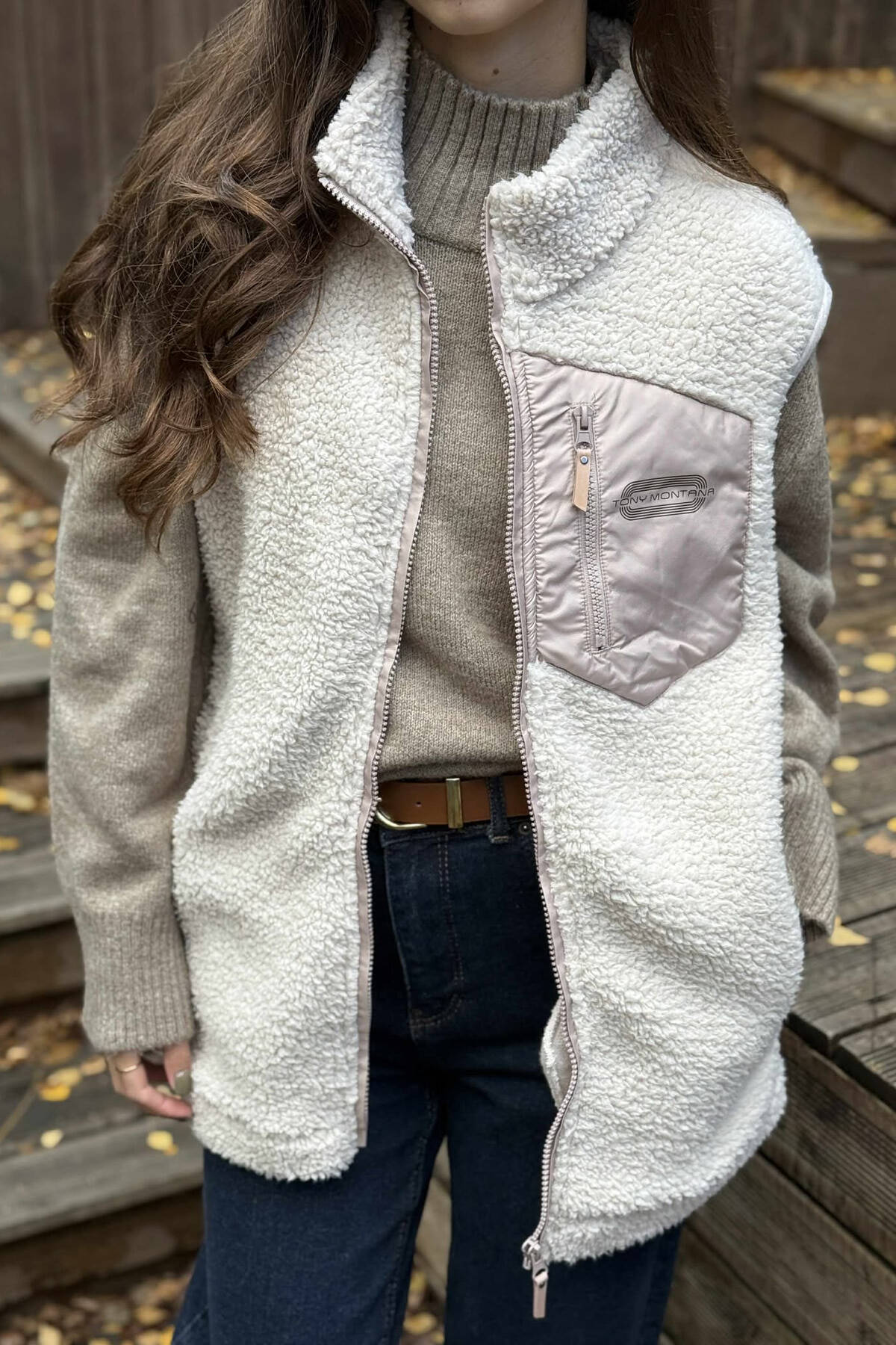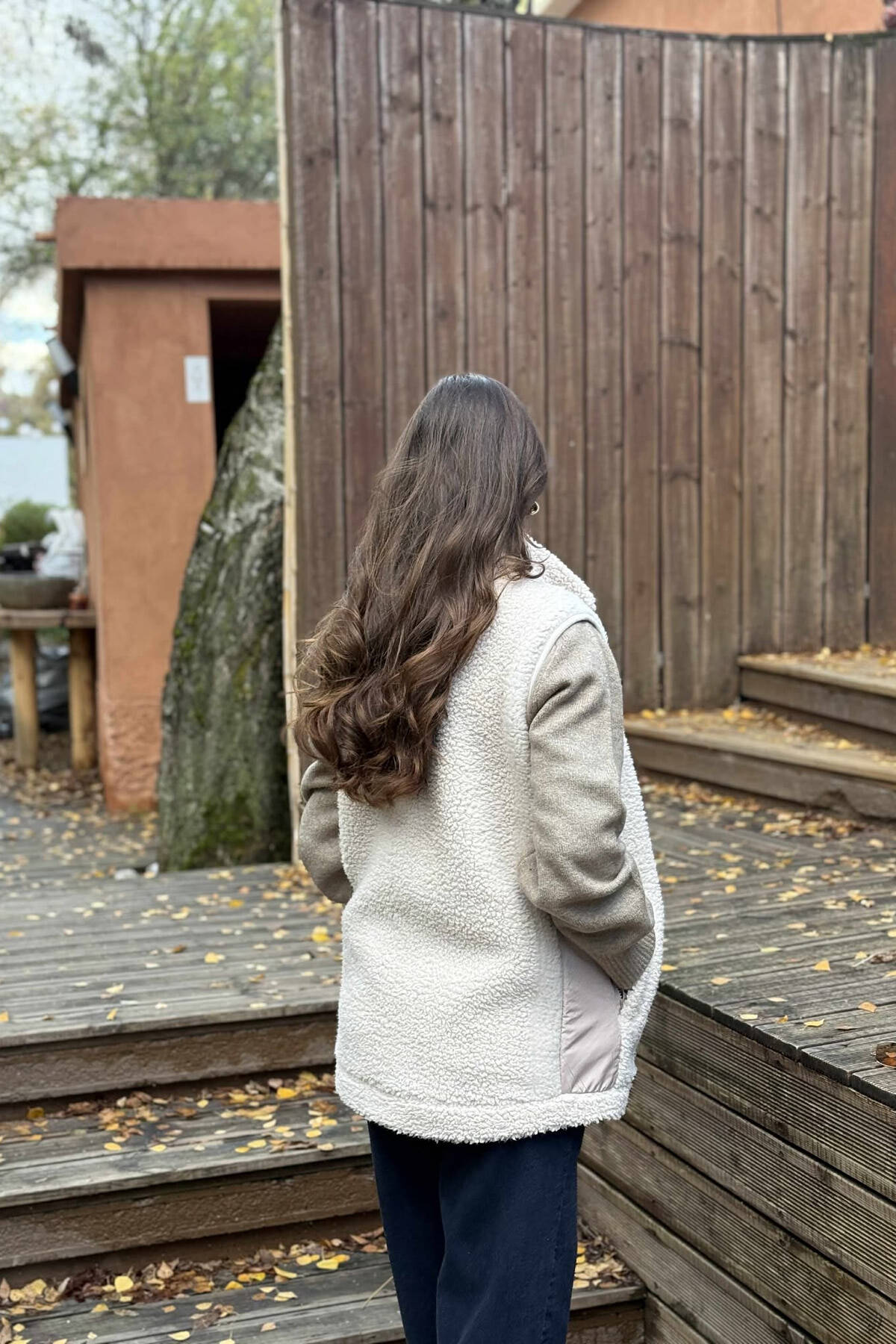 ONE COLOR TEDDY ZIPPER WOMEN VEST CREAM/KREM