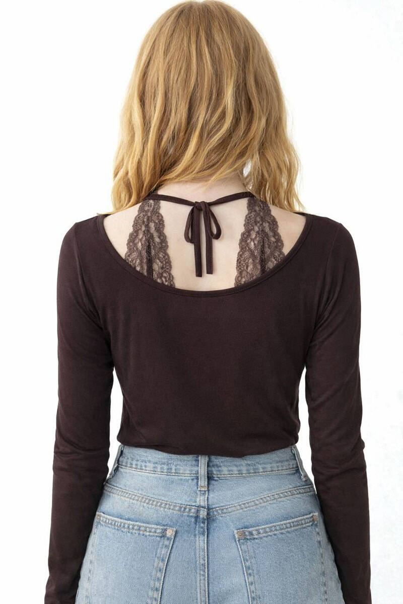 BLUZE NJE NGJYRESHE ME DETAJ DANTELLE PER FEMRA NE NGJYRE KAFE