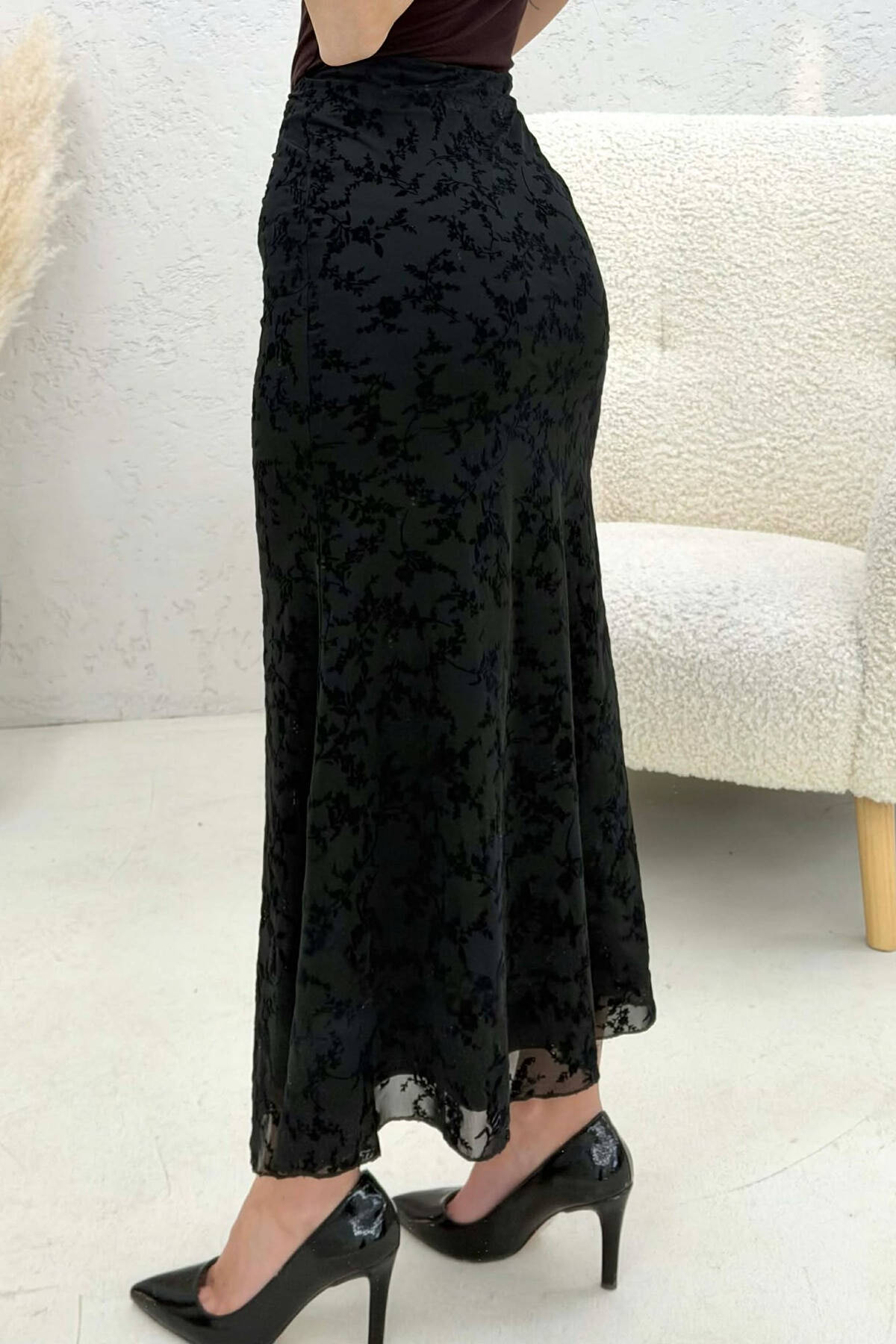 FRONT CUT SILVER DETAILS WOMEN SKIRT BLACK/ E ZEZE
