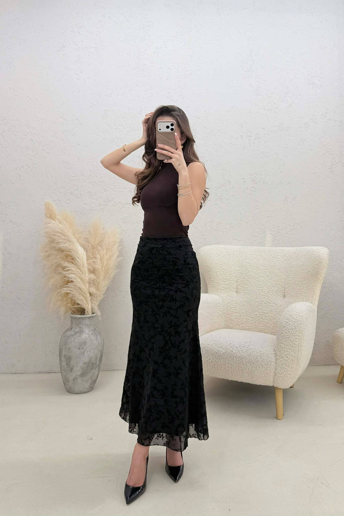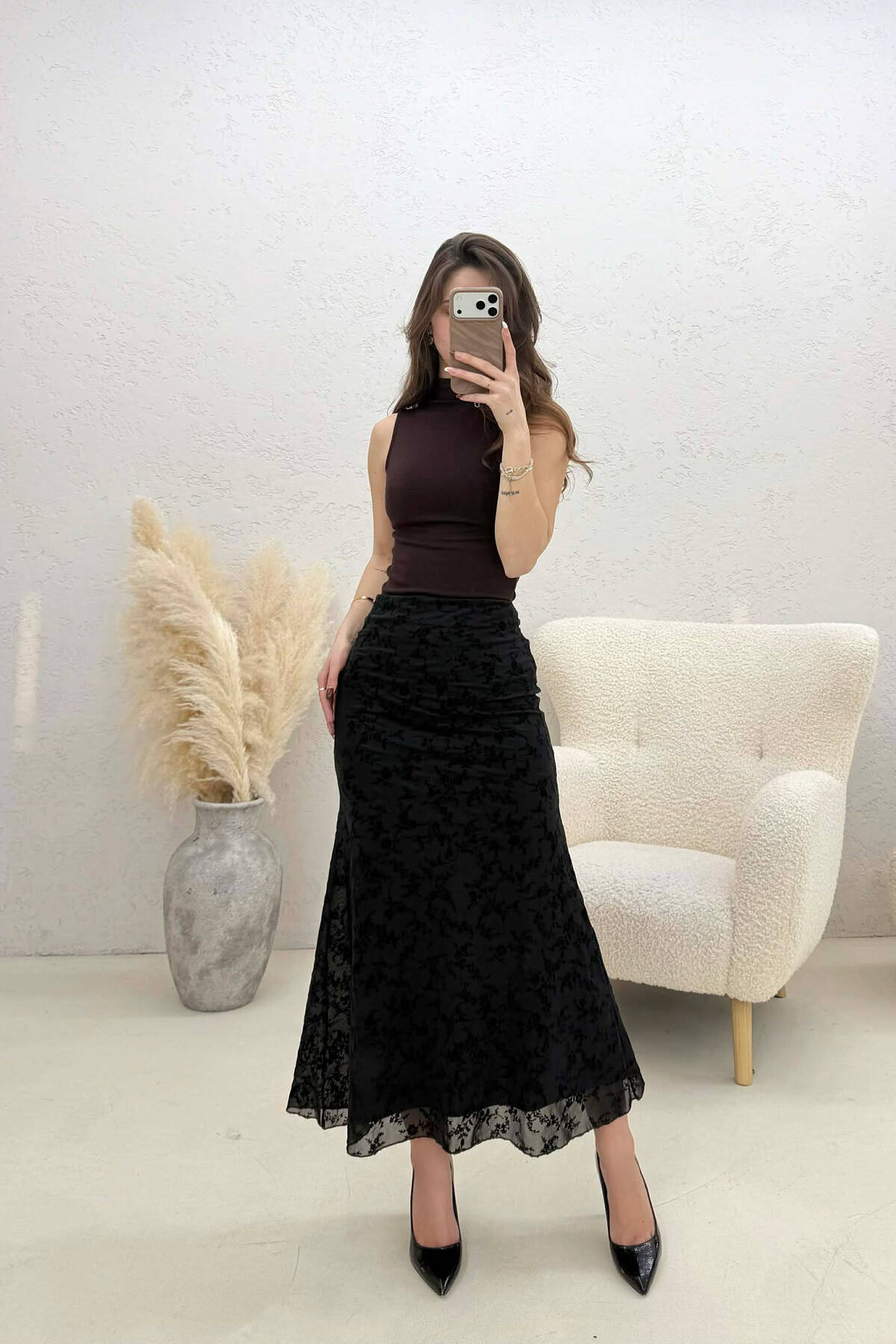 FUND KAMOSHI NJE NGJYRESH ME DETAJIN E RRIPIT PER FEMRA NE NGJYRE KAFE
