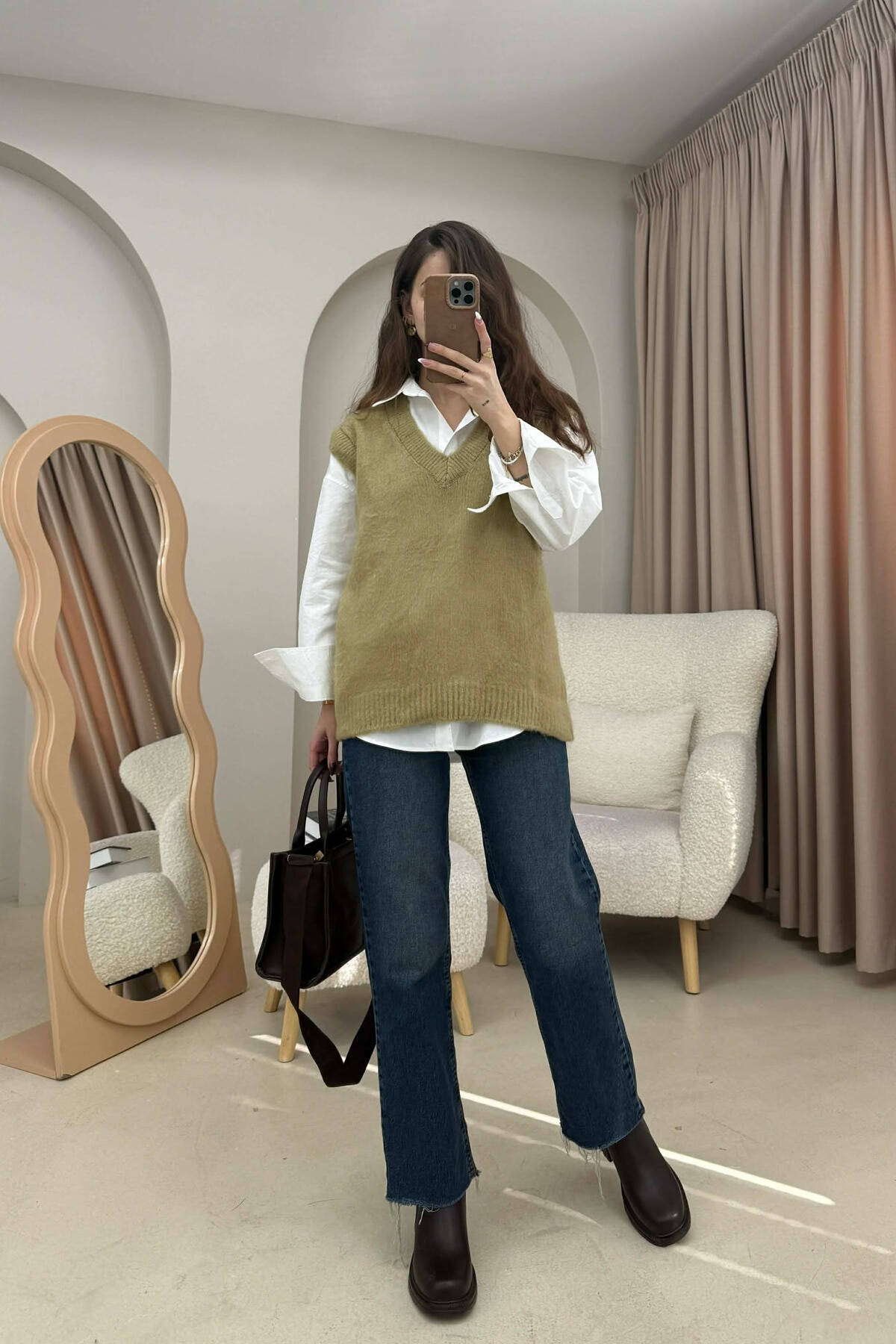 PULOVER ME LIDHESE PER FEMRA NE NGJYRE KAFE