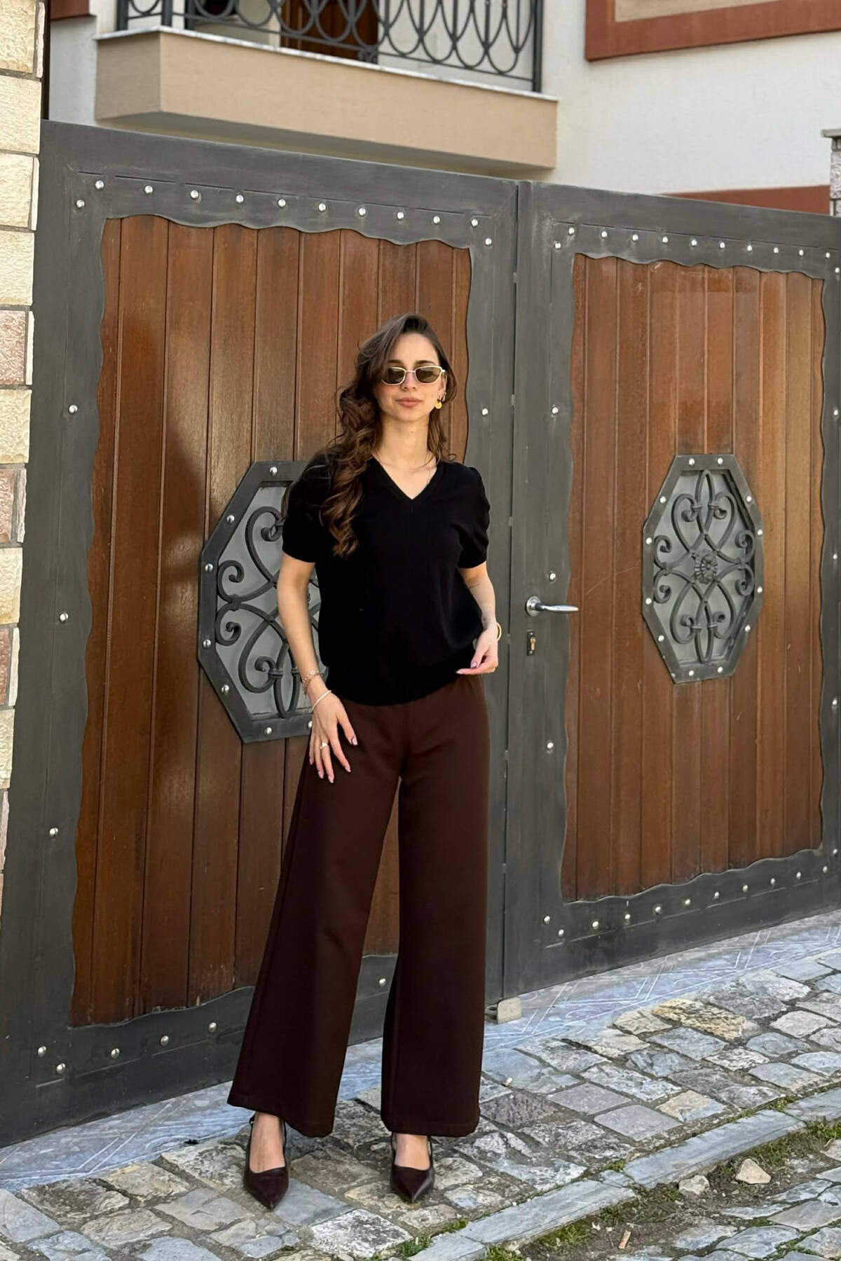 ONE COLOR V NECK WOMAN SWEATER BROWN/KAFE