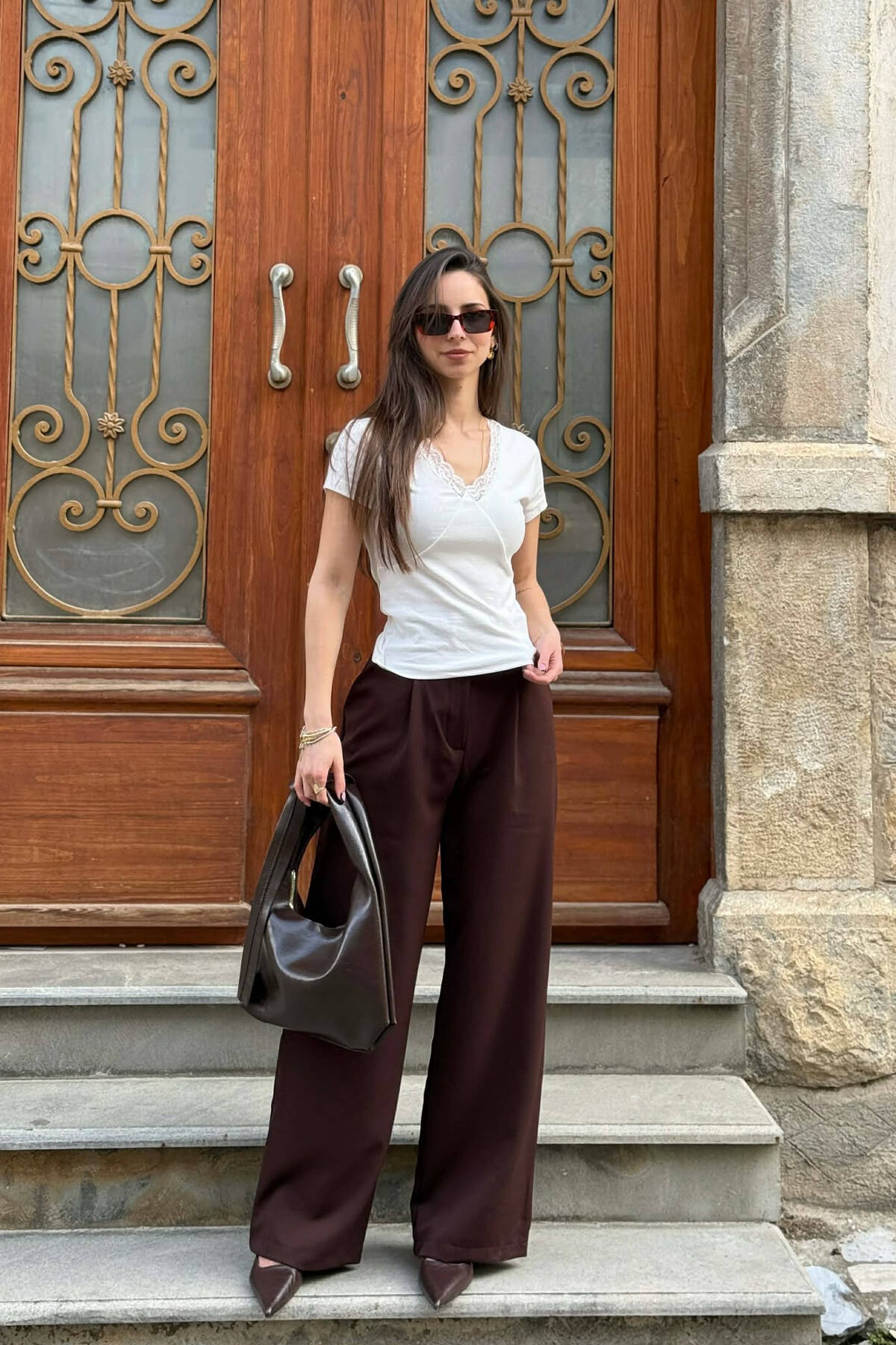 ONE COLOR SIMPLE WOMAN T-SHIRT BROWN/KAFE