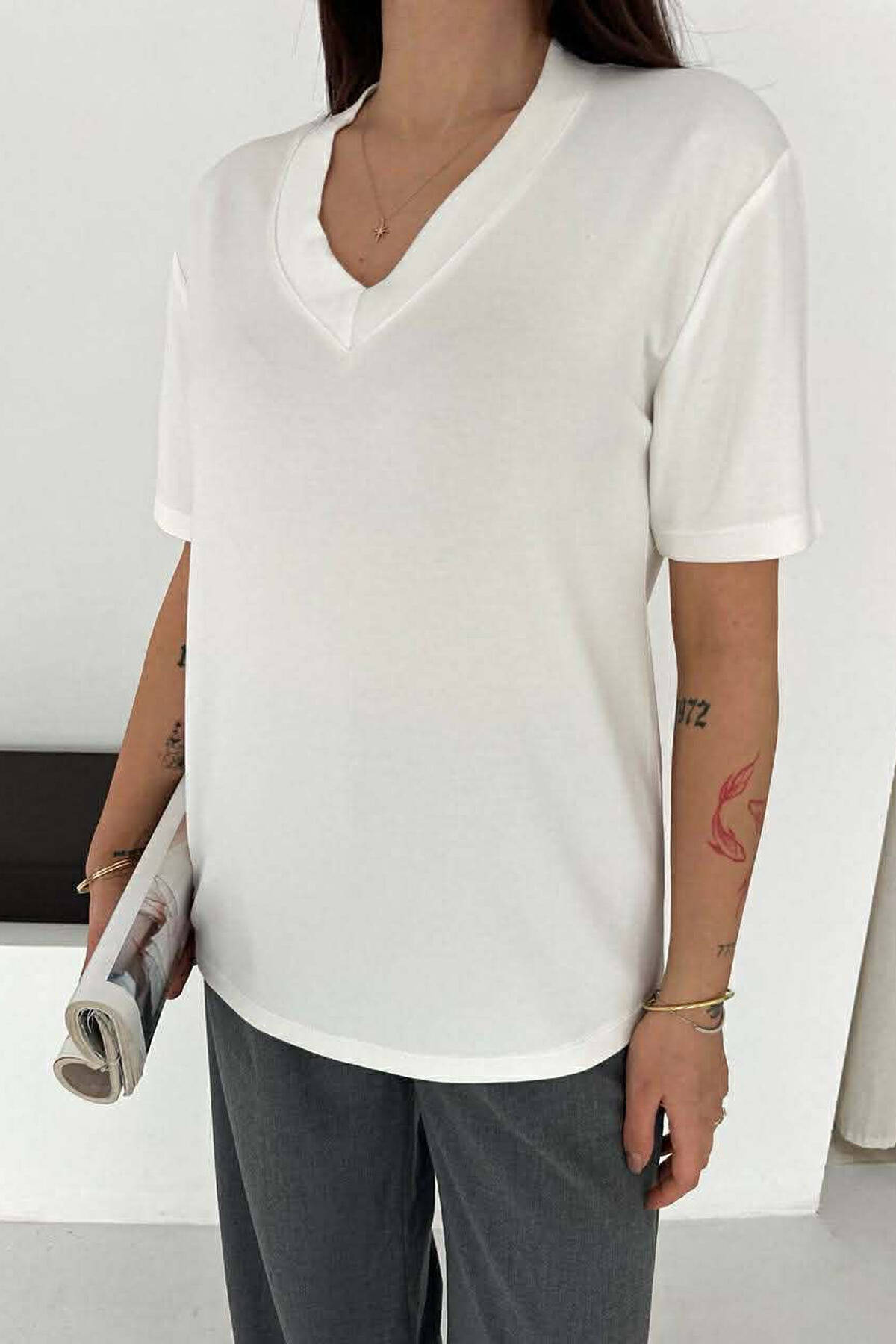 ONE COLOR V-NECK WOMAN T-SHIRT WHITE-E BARDHE