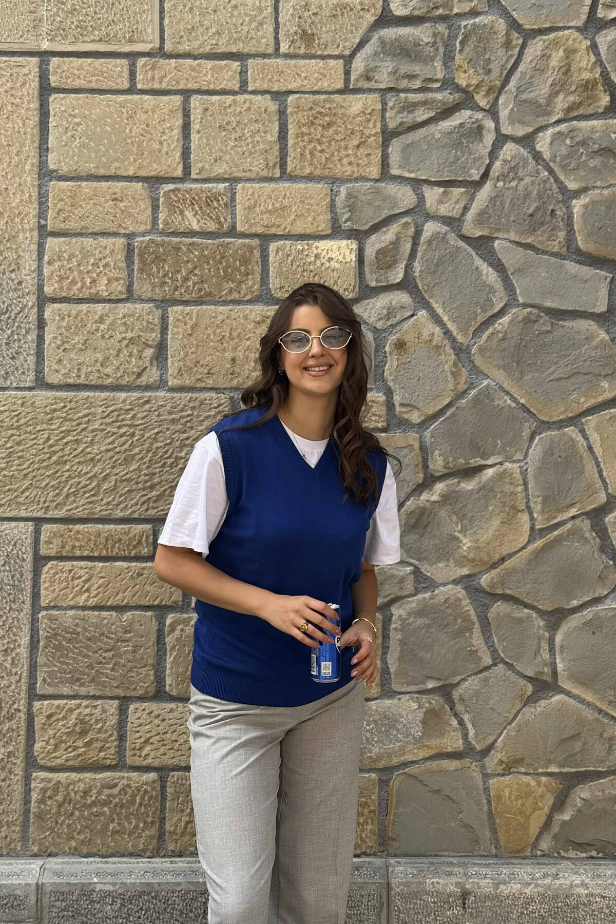 ONE COLOR V NECK WOMEN VEST BLUE/BLU