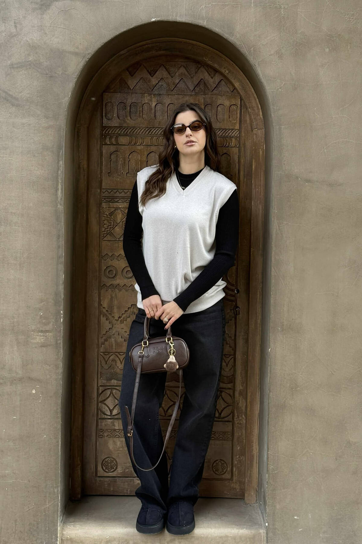ONE COLOR V NECK WOMEN VEST CREAM/KREM