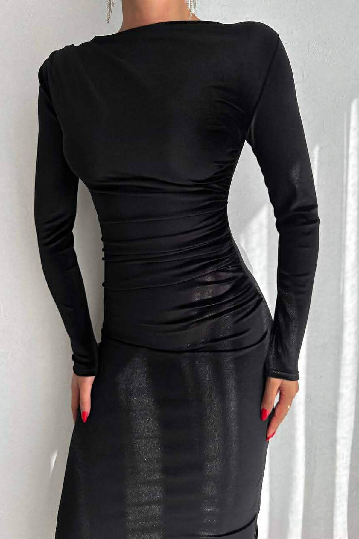 ONE COLOR LONG SLEEVE WOMAN DRESS BLACK/ E ZEZE