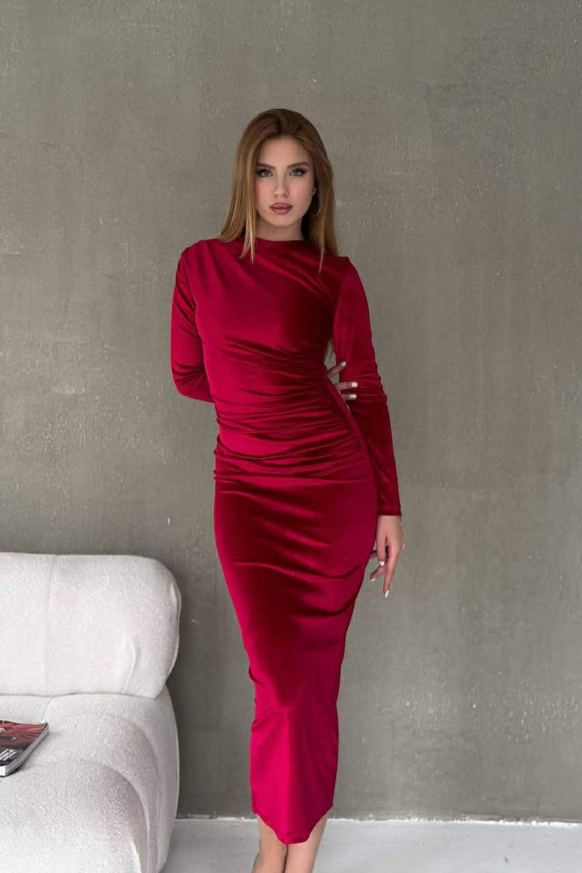 ONE COLOR VELVET WOMAN DRESS RED/E KUQE