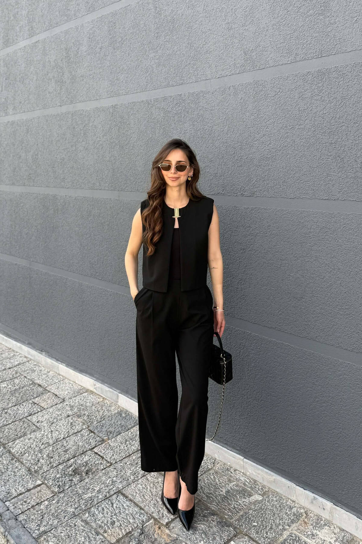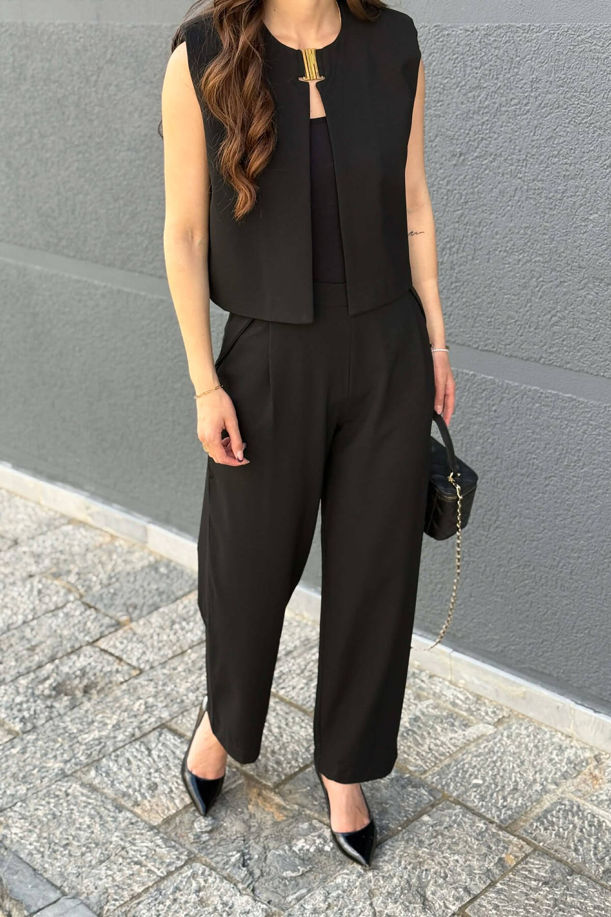 ONE COLOR VEST + TROUSERS WOMAN SET BLACK/ E ZEZE