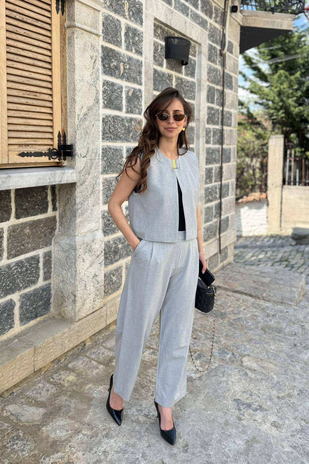 LACING DETAIL VEST +TROUSERS WOMAN SET GREY/GRI