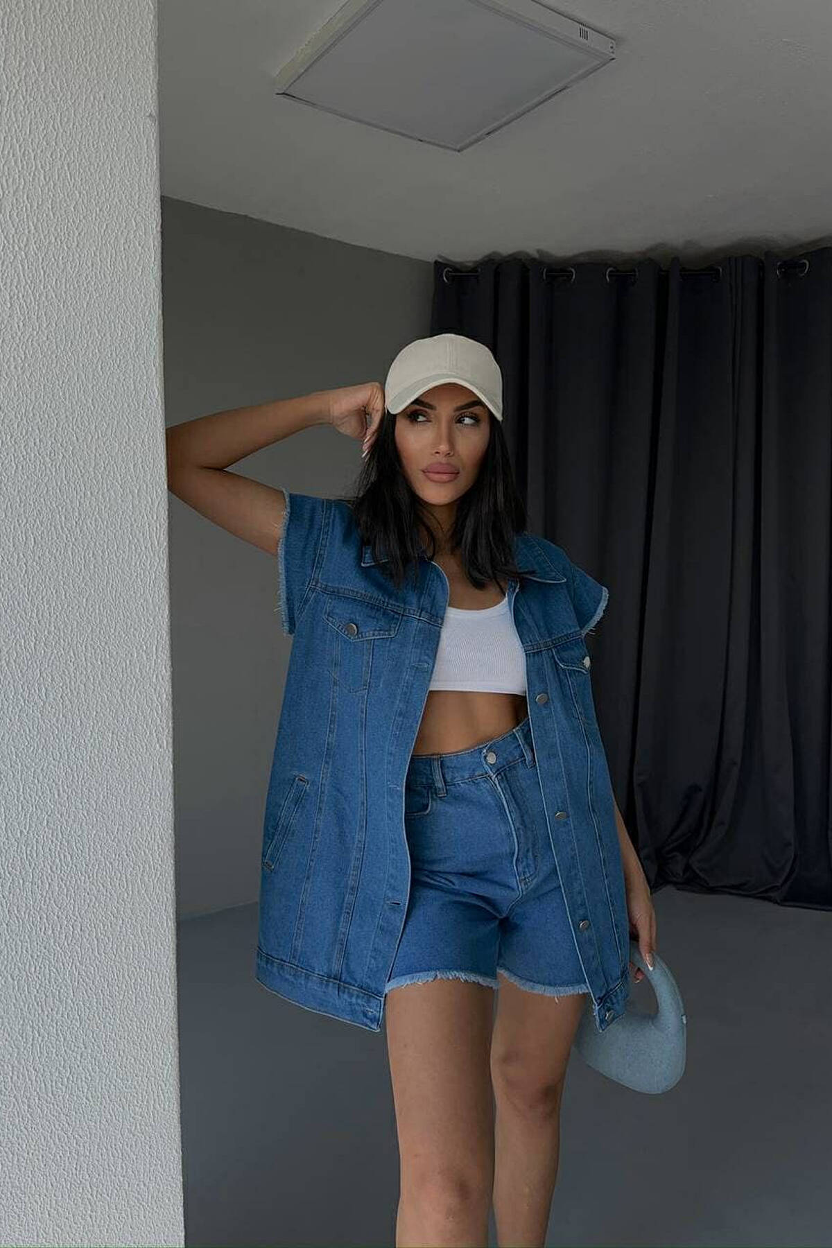 CROPPED JACKET+TANK TOP+TROUSERS 3 PIECE WOMEN SET BLUE/BLU