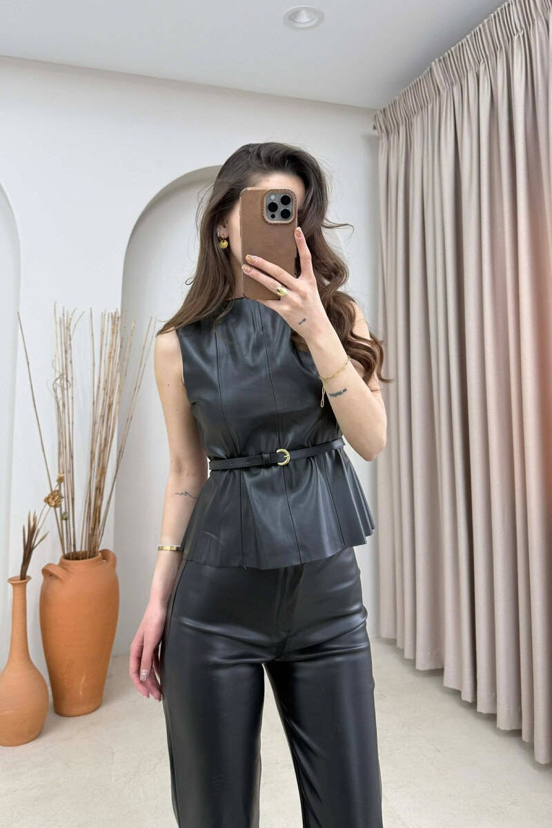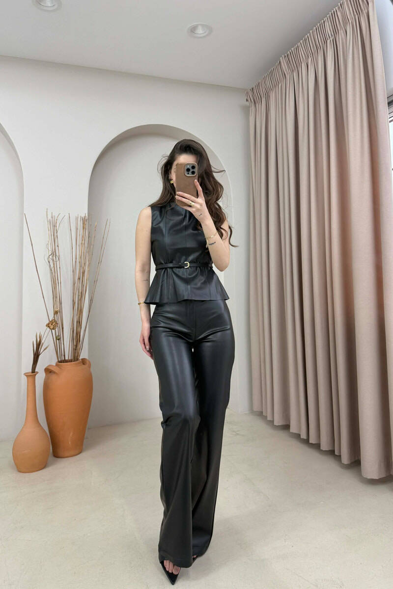 ONE COLOR VEST+TROUSERS LEATHER WOMEN SET BLACK/ E ZEZE