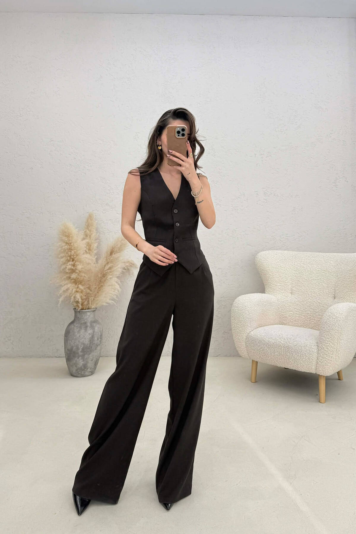 ONE COLOR VEST+TROUSERS WOMEN SET DARK BROWN/KAE