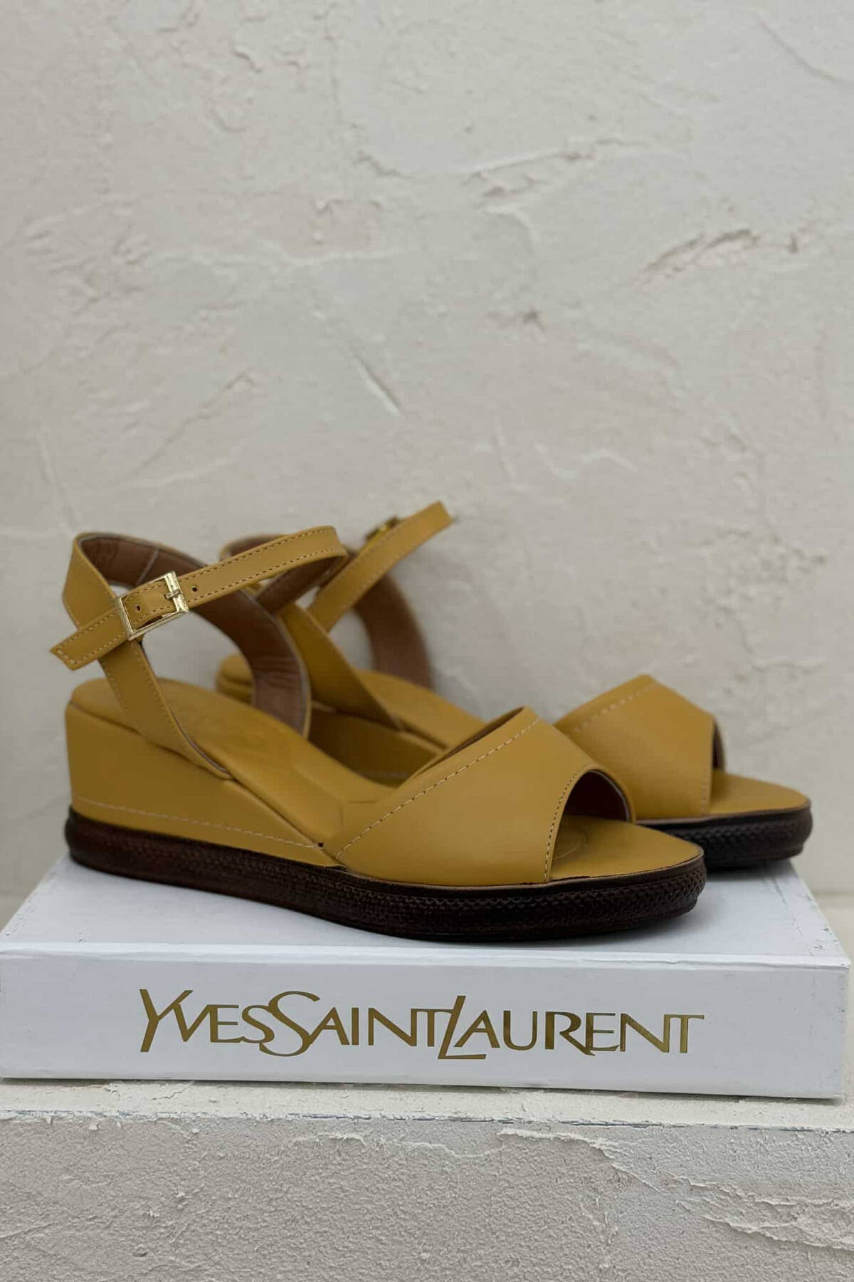 ONE COLOR WEDGE WOMEN SANDALS MUSTARD/MUSTARDE