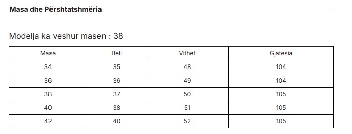 34-XS, 36-S, 38-M, 40-L, 42-XL