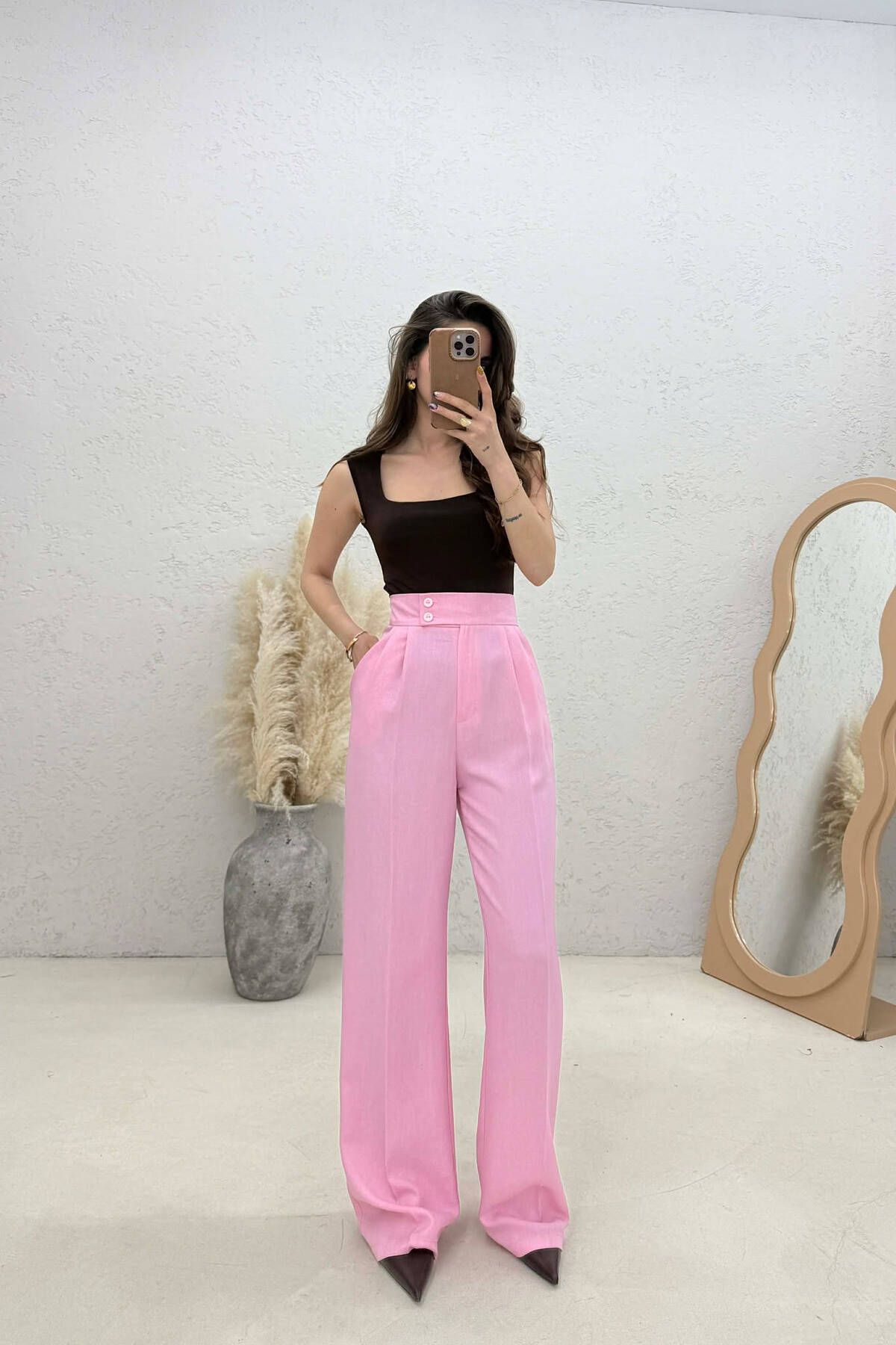 ONE COLOR WIDE LEG WOMAN TROUSERS BABY PINK/ROZB
