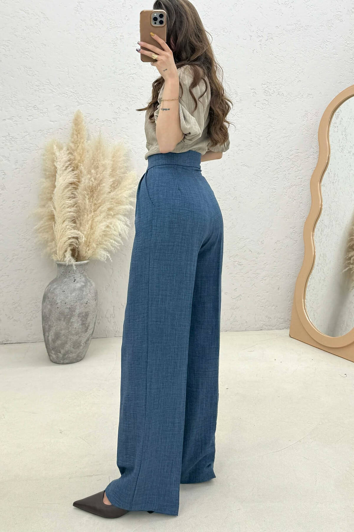 LINEN BLEND BELT DETAIL WOMAN TROUSERS BEIGE/BEZHE