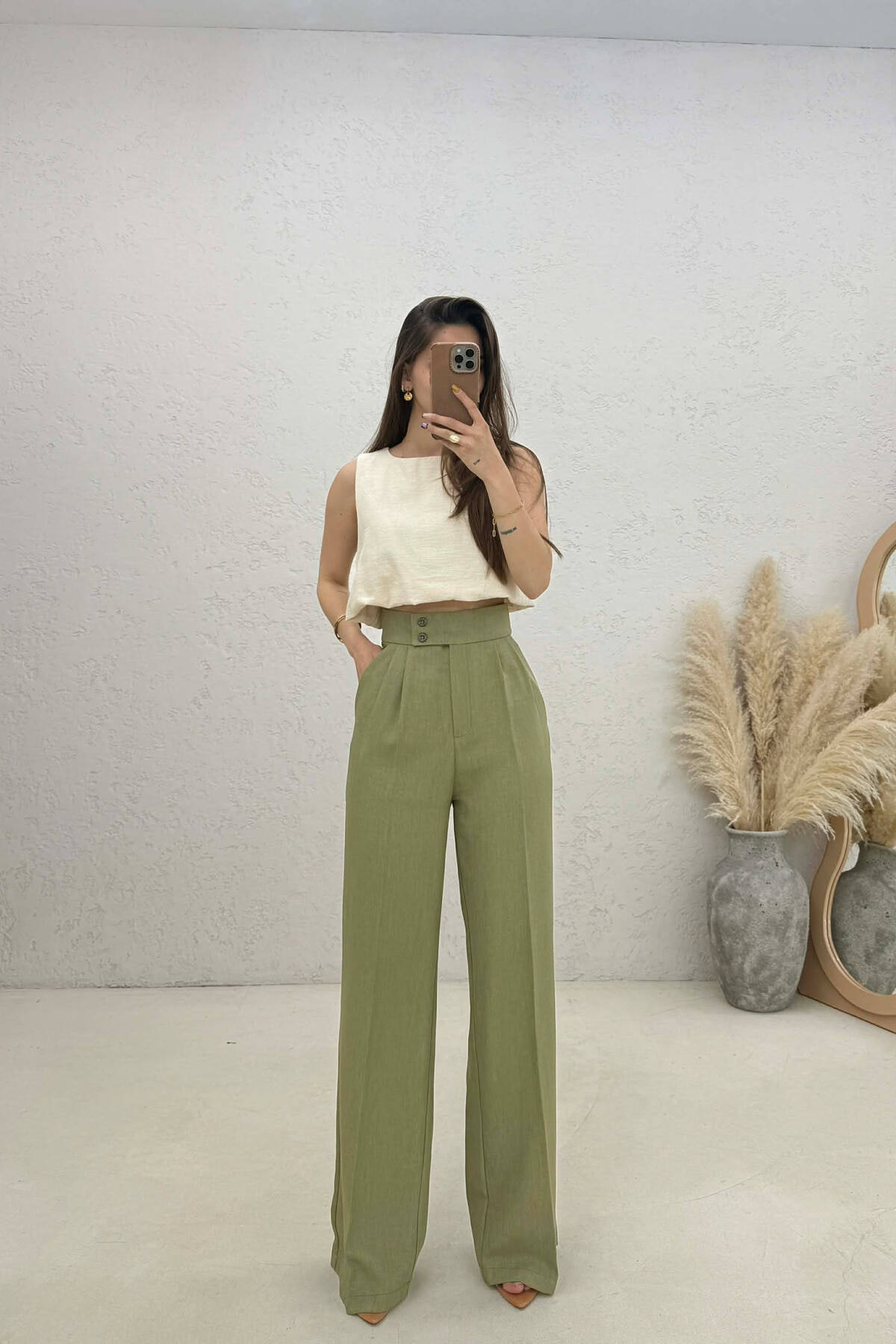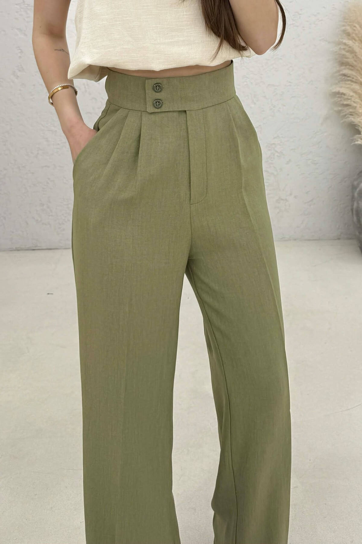 ONE COLOR WIDE LEG WOMAN TROUSERS OLIVE/ULLI