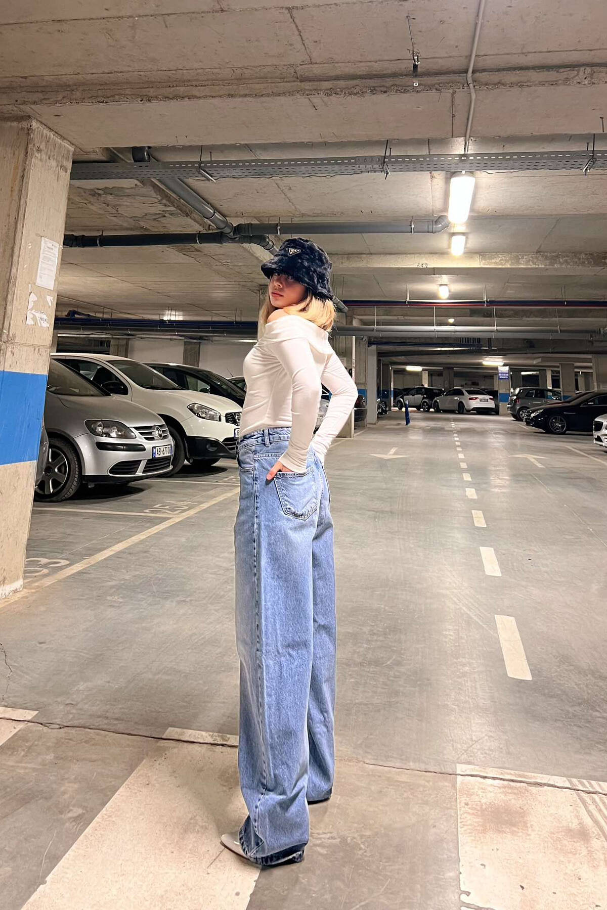 BELT DETAIL WIDE LEG WOMAN JEANS LIGHTBLUE/BZ
