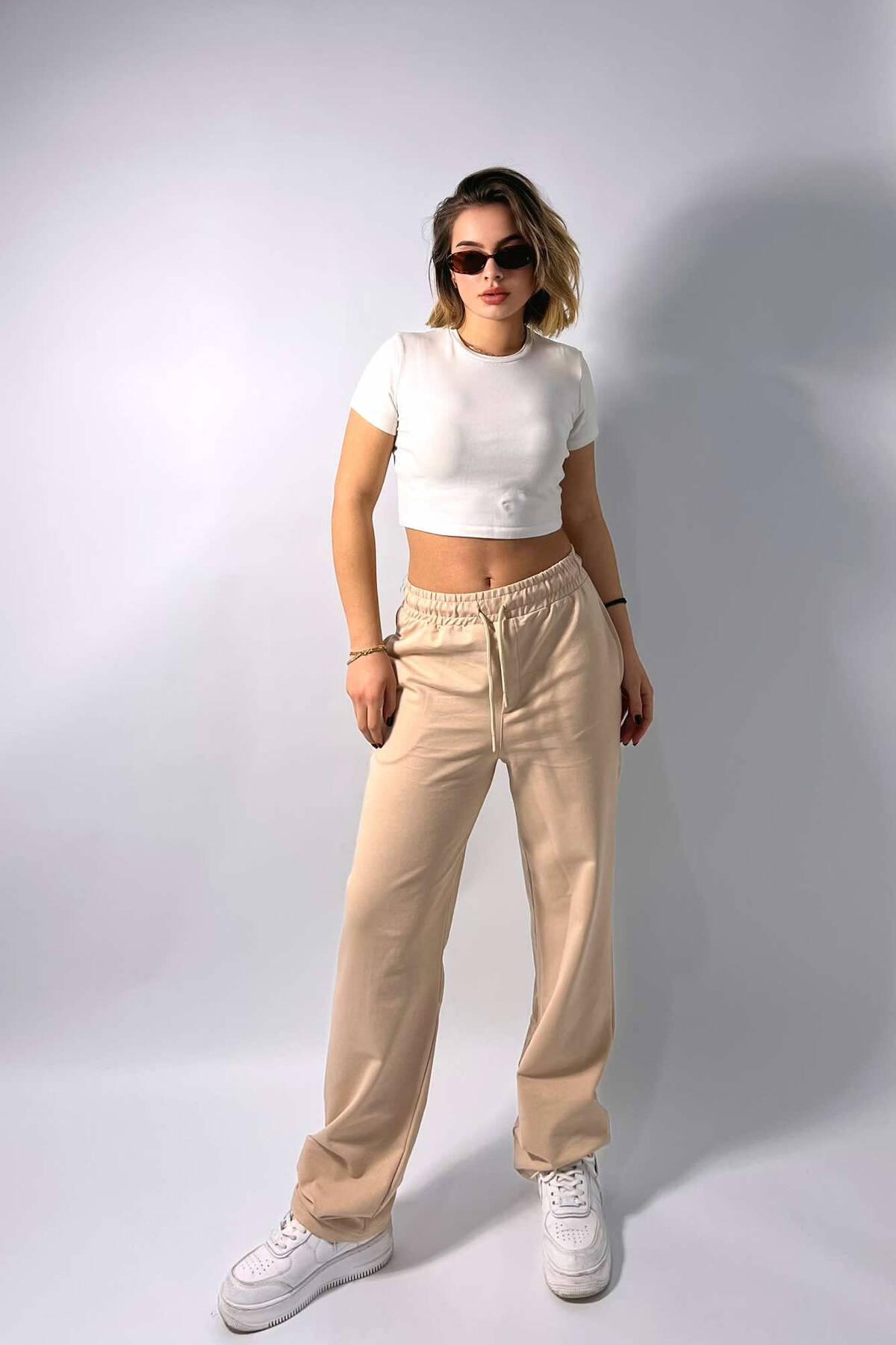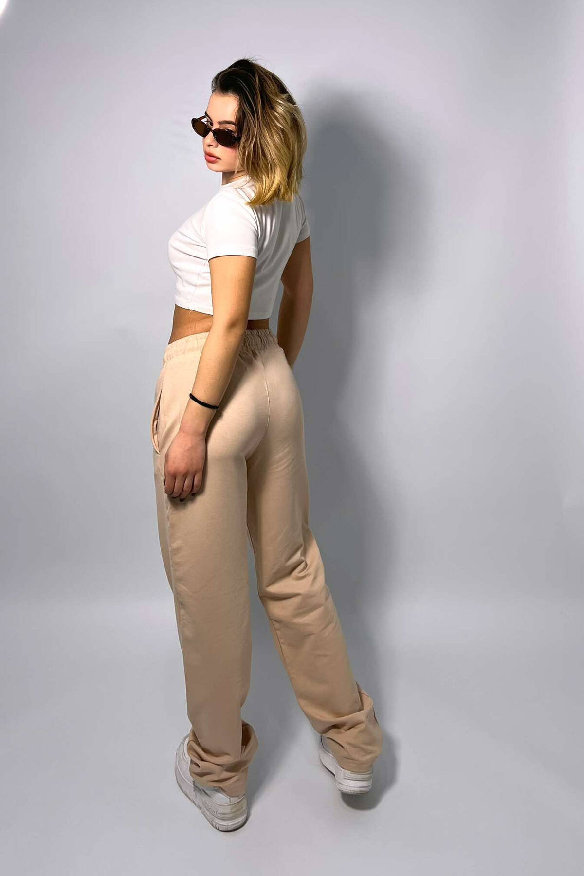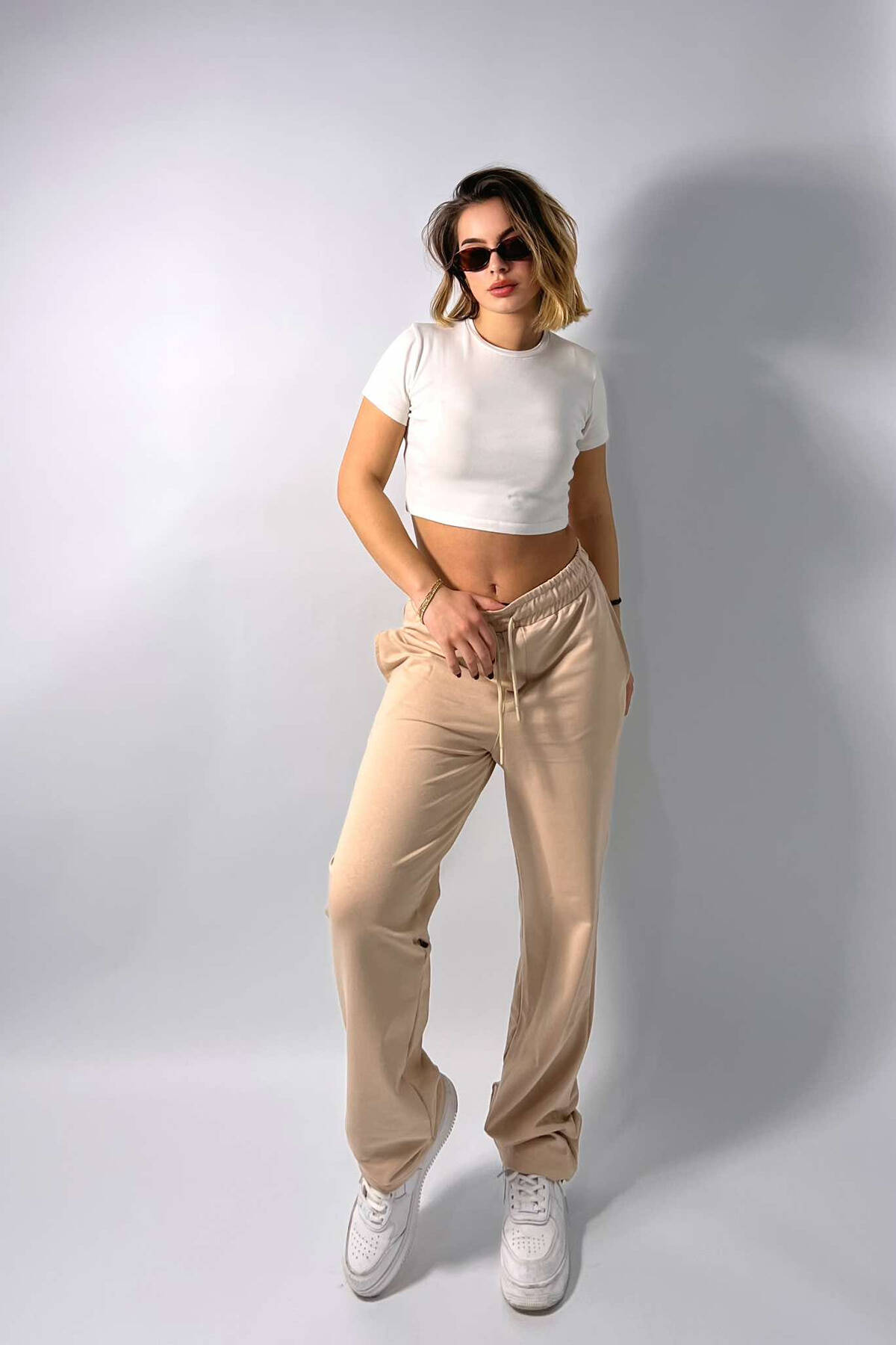 ONE COLOR WIDE LEG WOMEN SWEATPANTS BEIGE/BEZHE