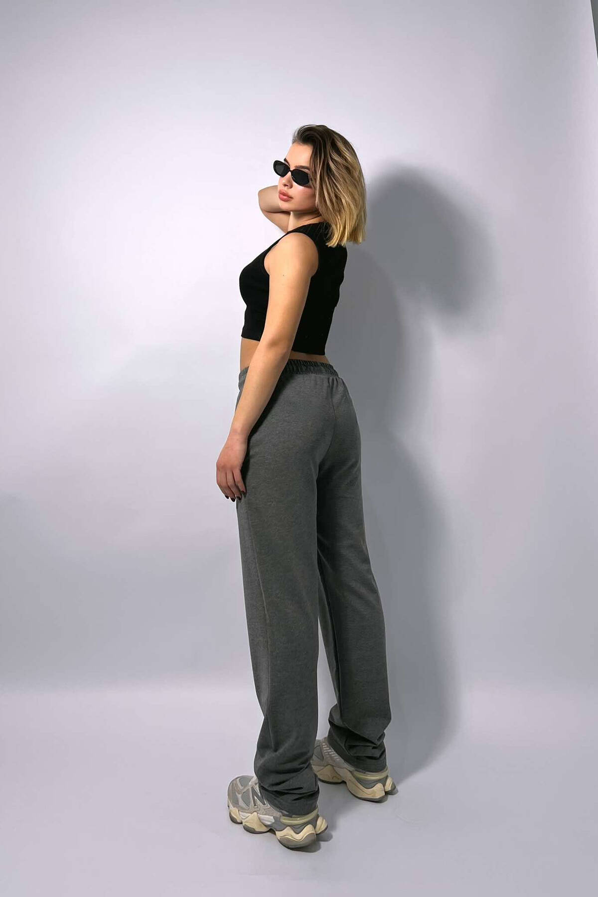 ONE COLOR SIMPLE ELASTIC WAIST WOMEN SWEATPANTS DARK GREY/GEE