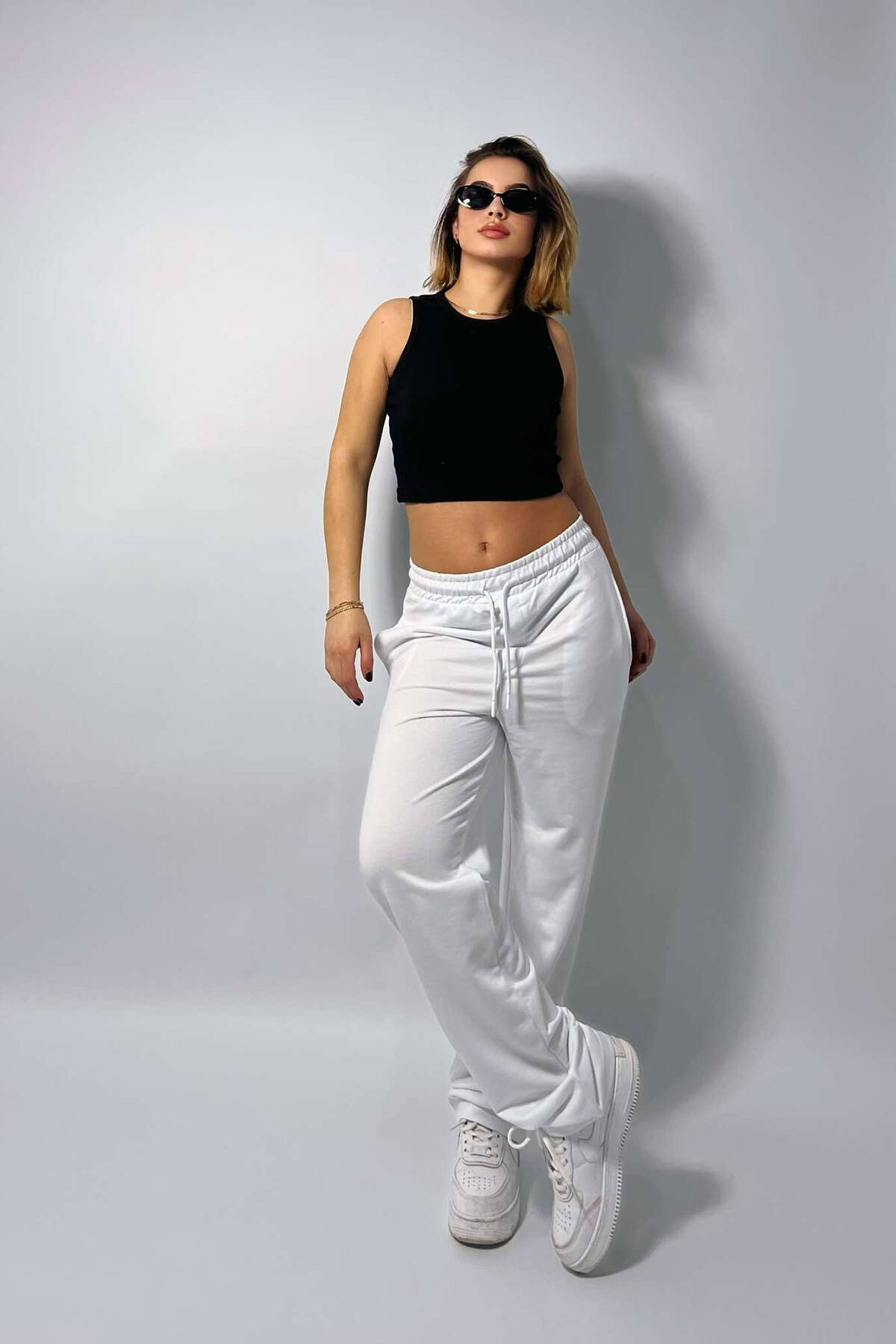 ONE COLOR WIDE LEG WOMEN SWEATPANTS WHITE-E BARDHE