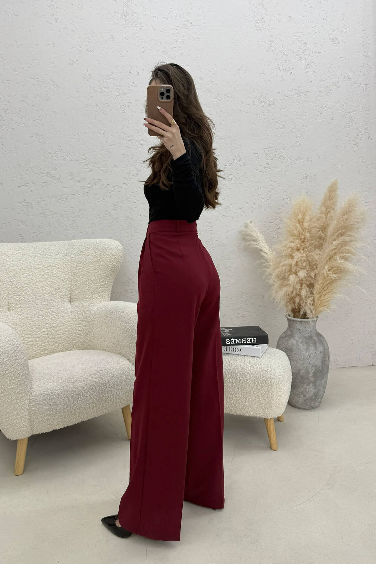 ONE COLOR WIDE LEG WOMEN TROUSERS BURGUNDY/VISHNJE