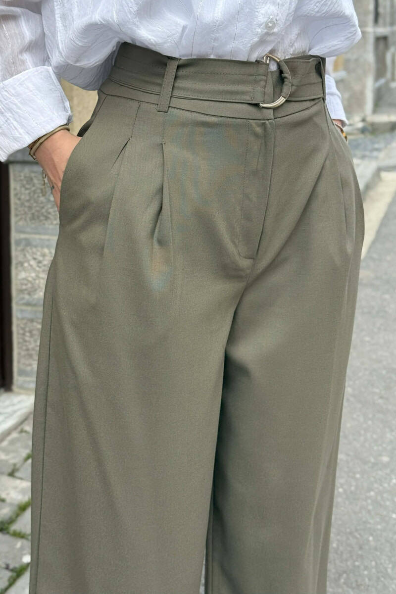 PANTALLONA NJË NGJYRËSHE ME BEL GJYSËM ELASTIK PËR FEMRA NË NGJYRE JESHILE