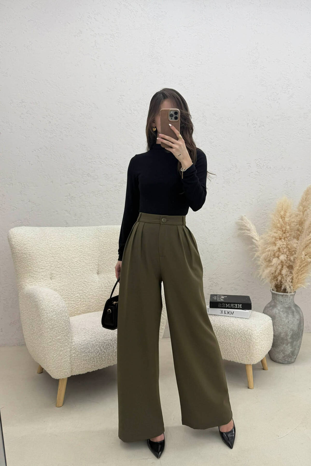 ONE COLOR WIDE LEG WOMEN TROUSERS OLIVE/ULLI