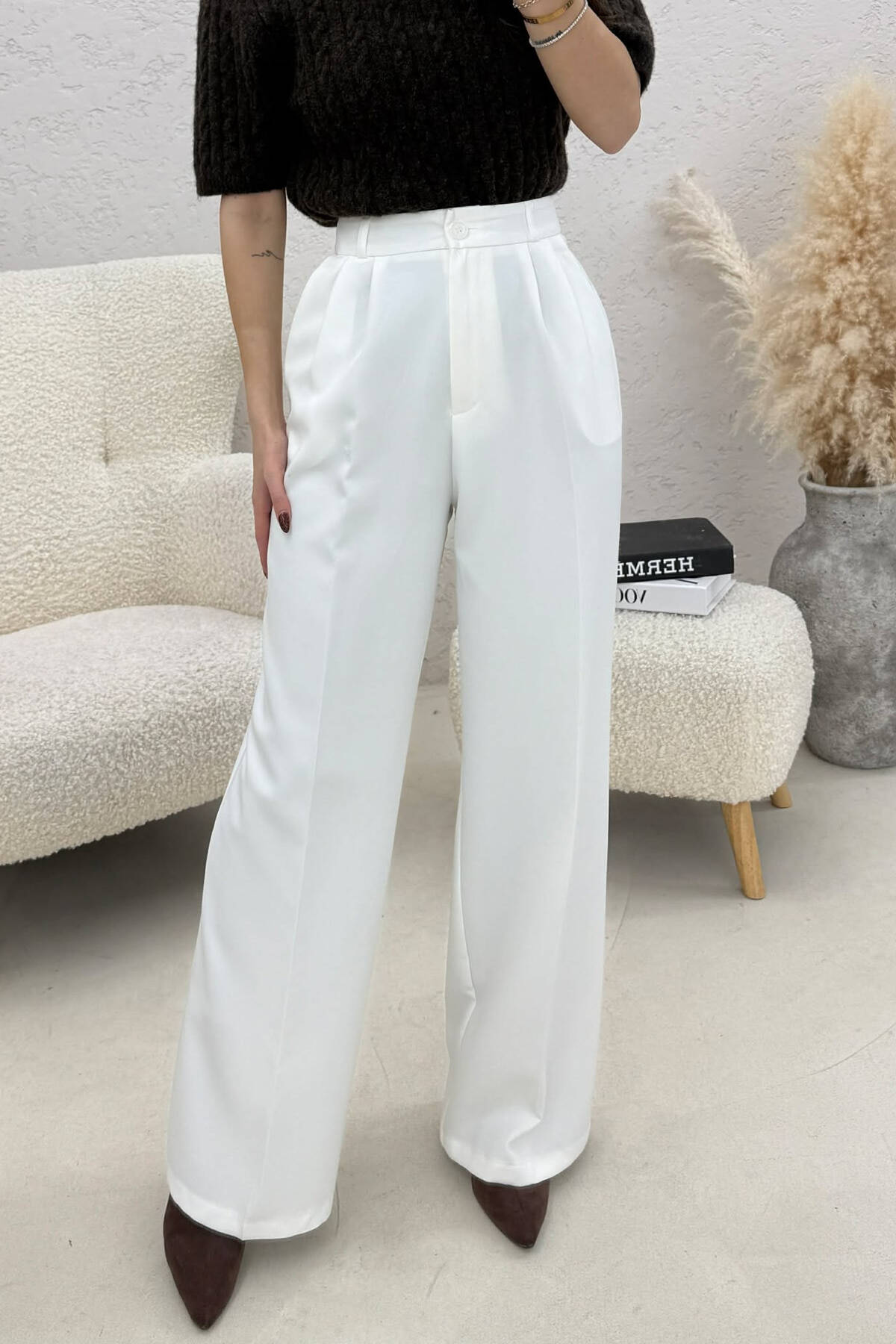 ONE COLOR WIDE LEG WOMEN TROUSERS WHITE-E BARDHE