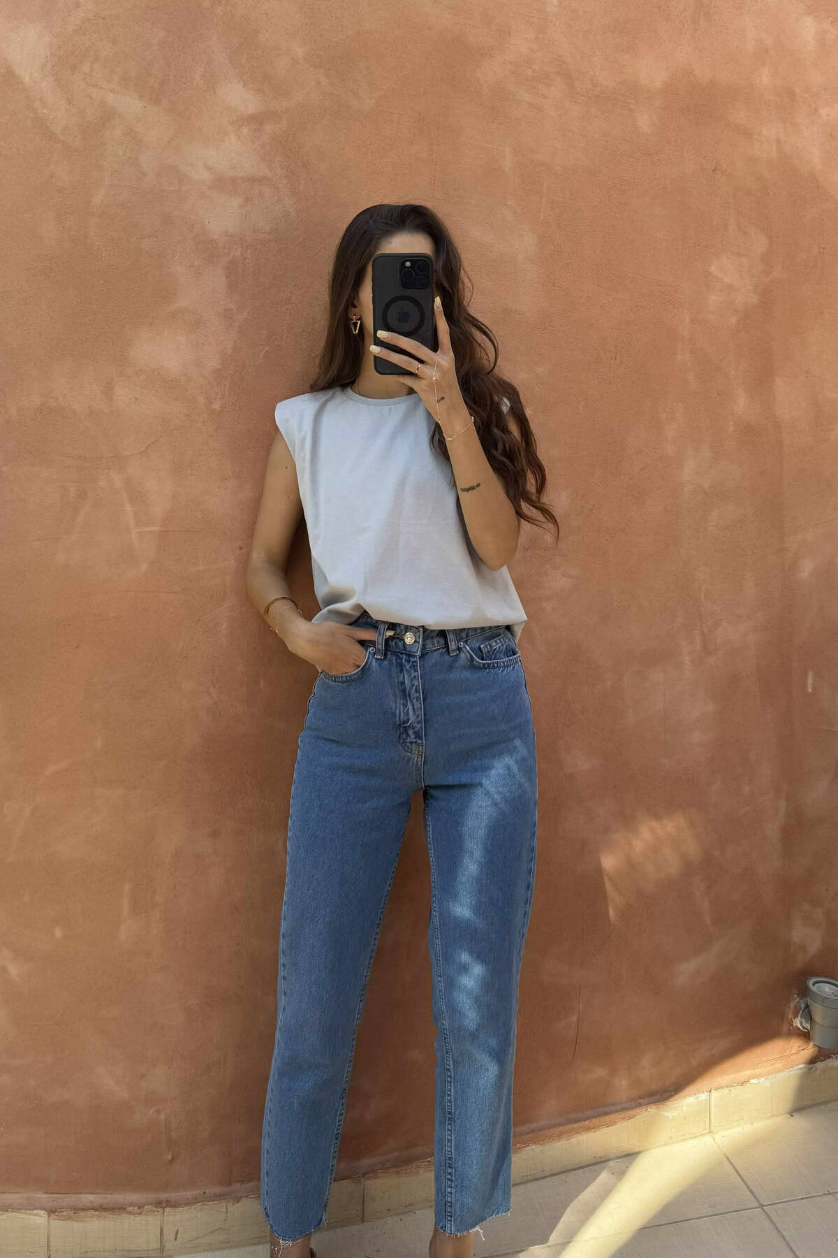 PEARLS RIBBON DETAILS WOMAN TANK TOP LIGHTBLUE/BZ