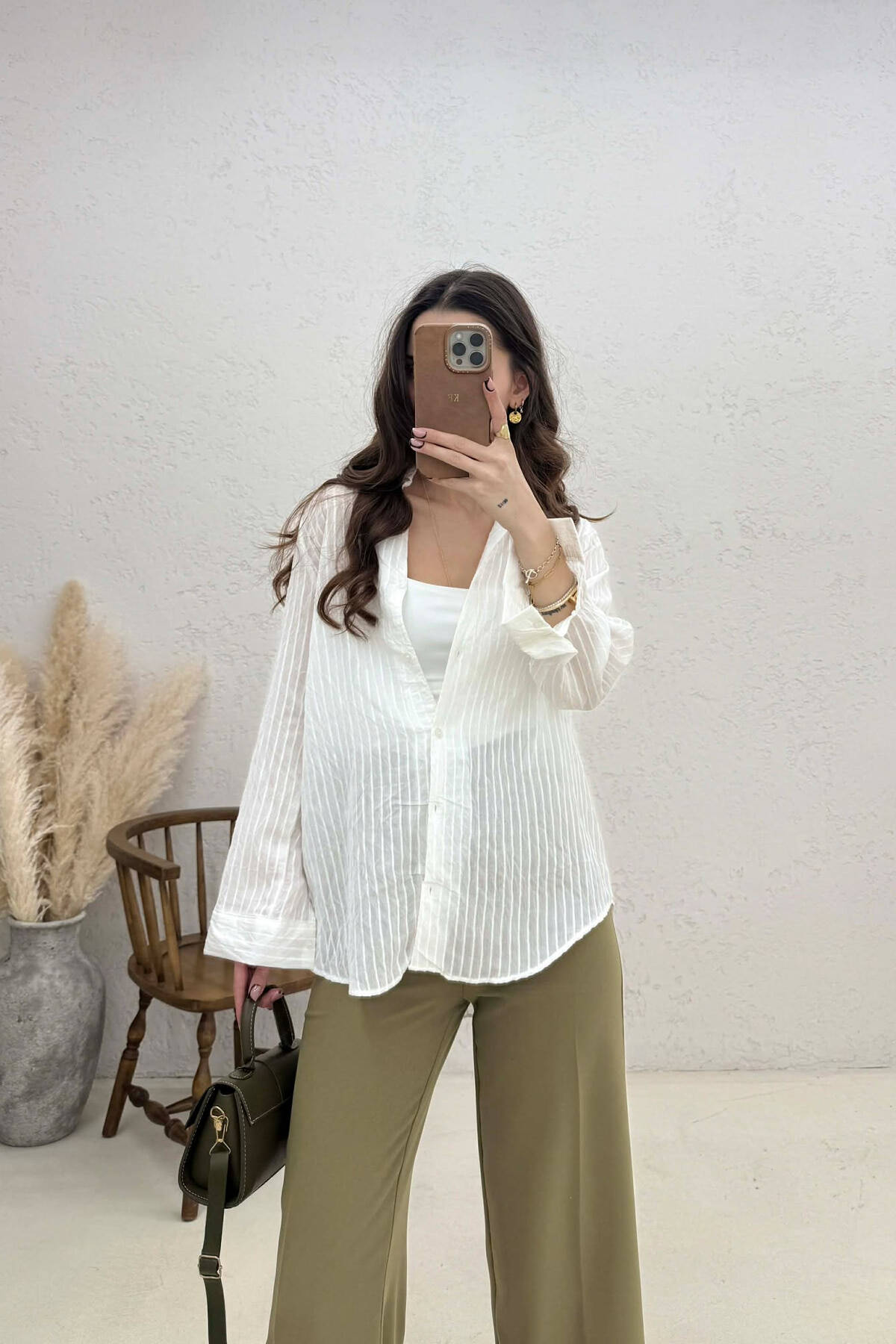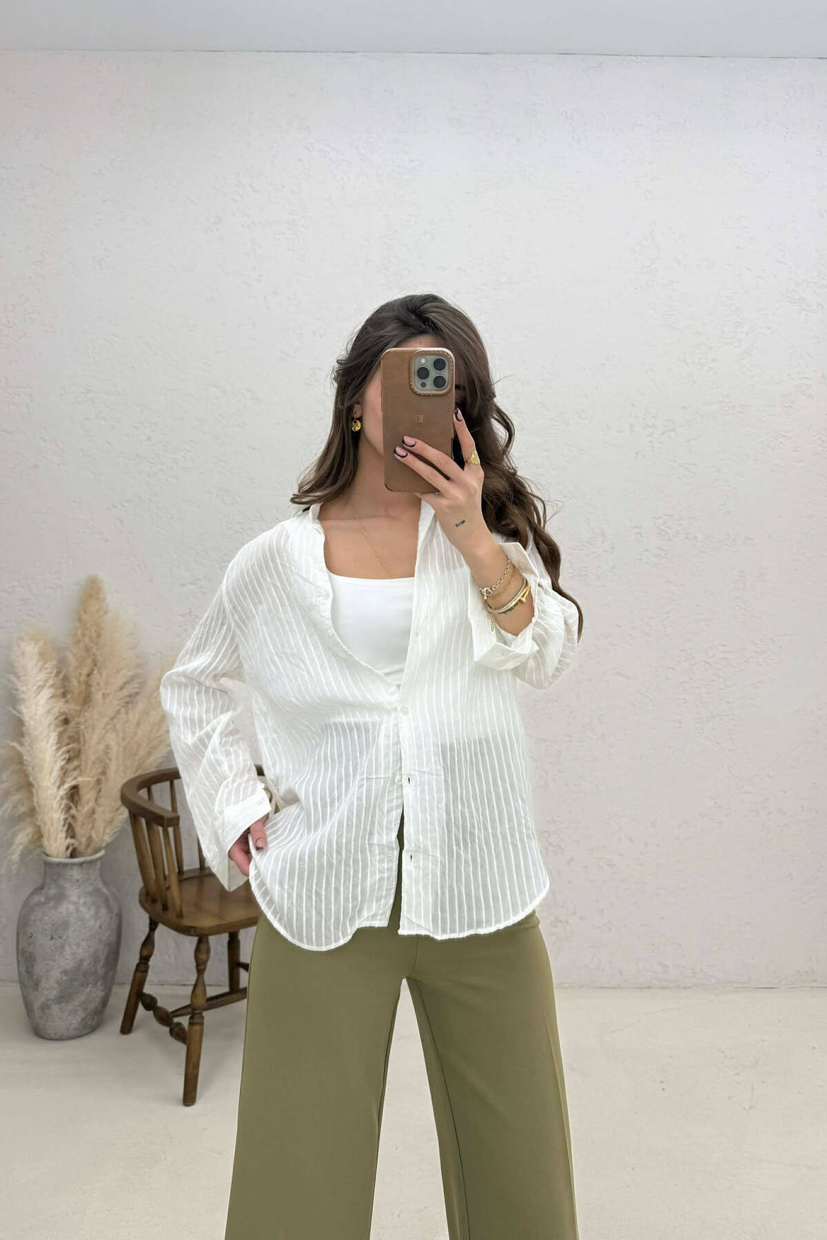 LONG SLEEVES ONE COLOR SIMPLE WOMEN SHIRT WHITE-E BARDHE