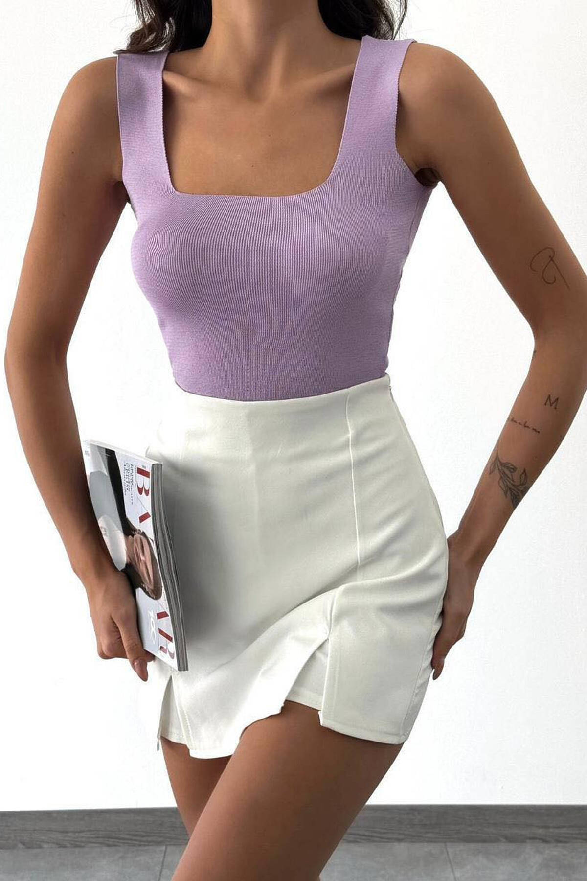ONE COLOR HIGH NECK WOMAN TANK TOP CREAM/KREM