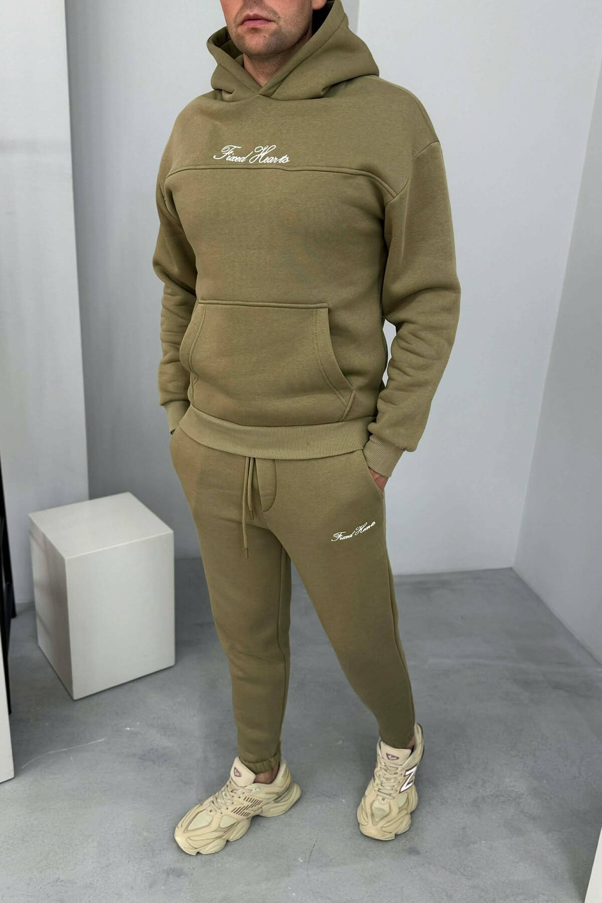 ONE COLOR WRITTINGS HOODIE+ SWEATPANTS MEN SET MINT/MENTE