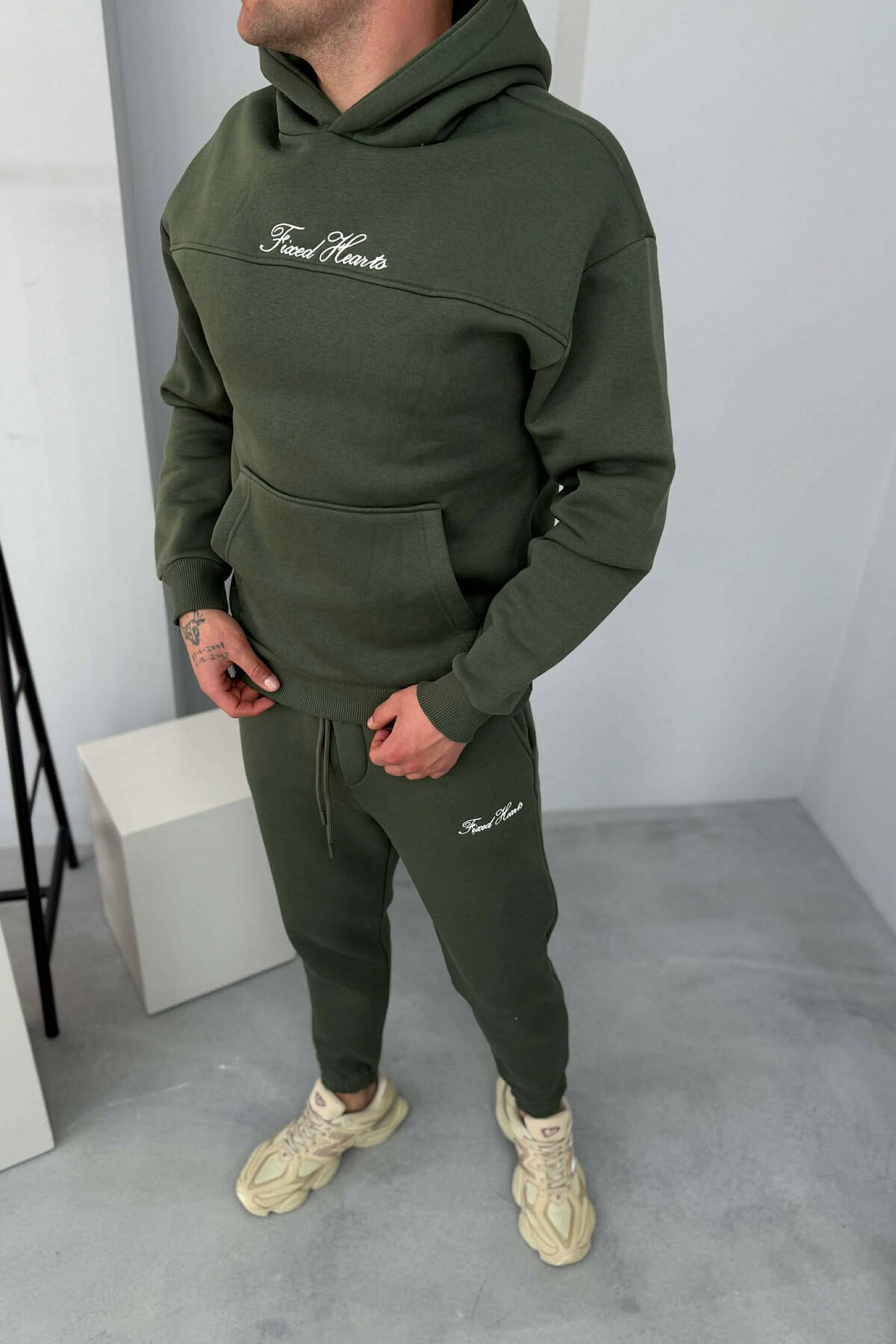 ONE COLOR WRITTINGS HOODIE+ SWEATPANTS MEN SET OLIVE/ULLI