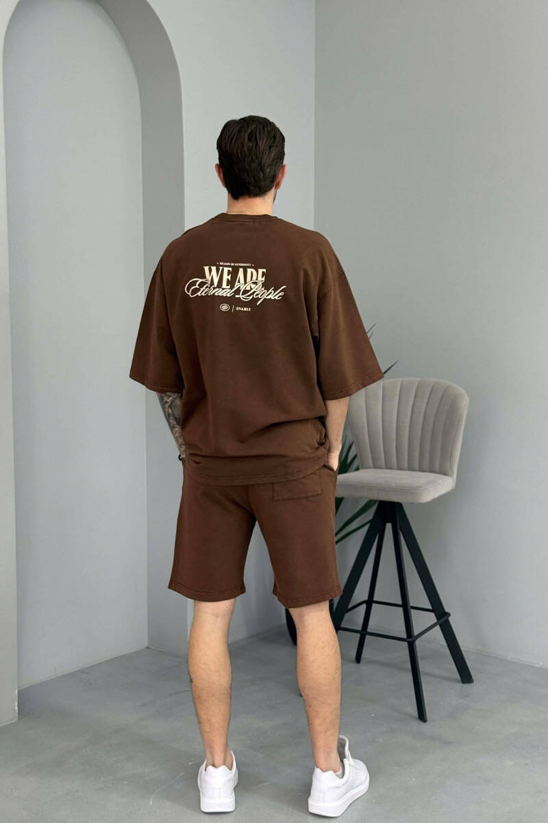 ONE COLOR WRITTINGS T-SHIRT + SHORTS MEN SET BROWN/KAFE