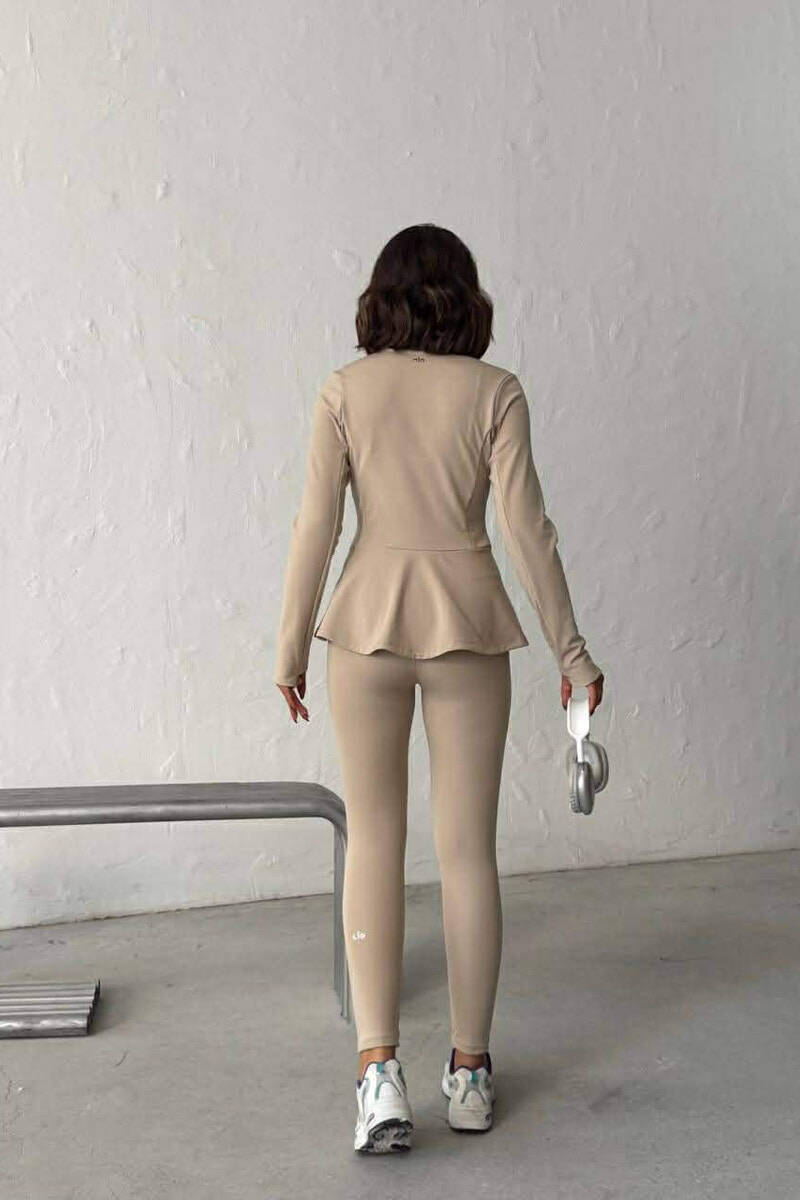 ONE COLOR ZIPPER JACKET + SWEATPANTS WOMAN SET BEIGE/BEZHE