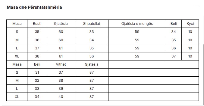 Size chart