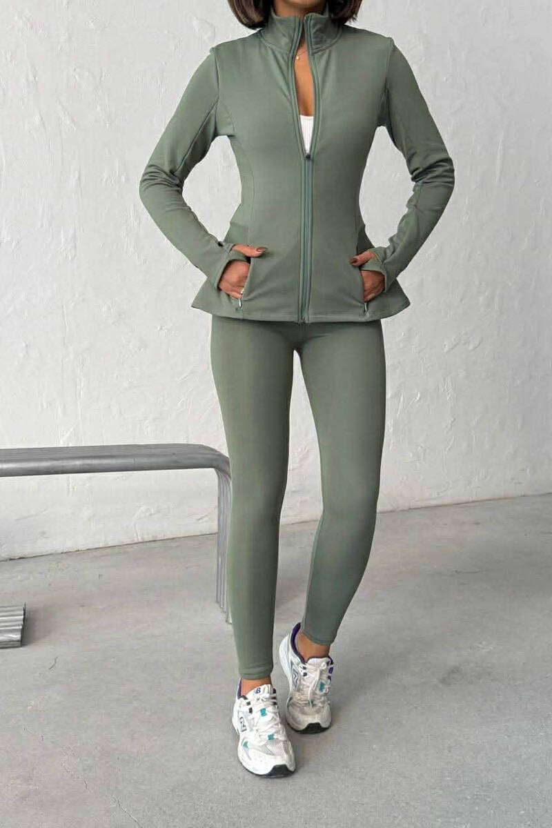 ONE COLOR ZIPPER JACKET + SWEATPANTS WOMAN SET GREEN/JESHILE