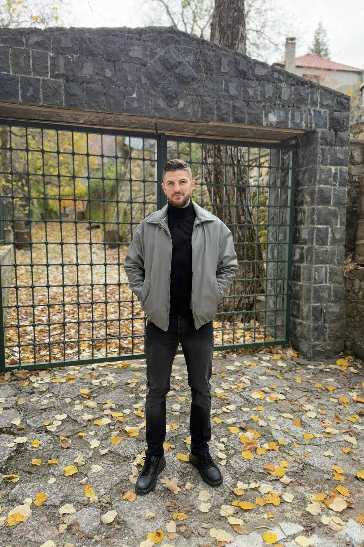 LEATHER BUTTONED AND ZIPPER MEN JACKET GREY/GRI