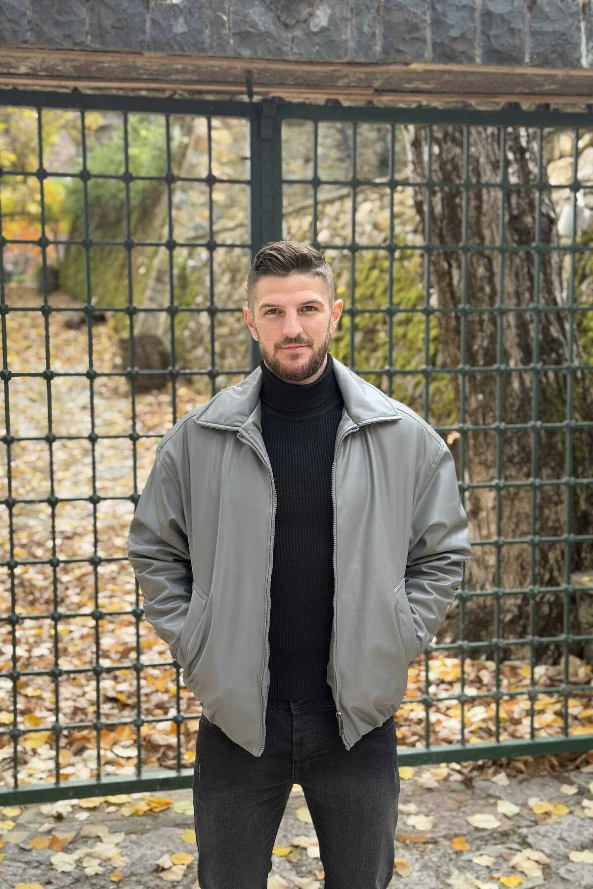 ONE COLOR ZIPPER LEATHER MEN JACKET GREY/GRI