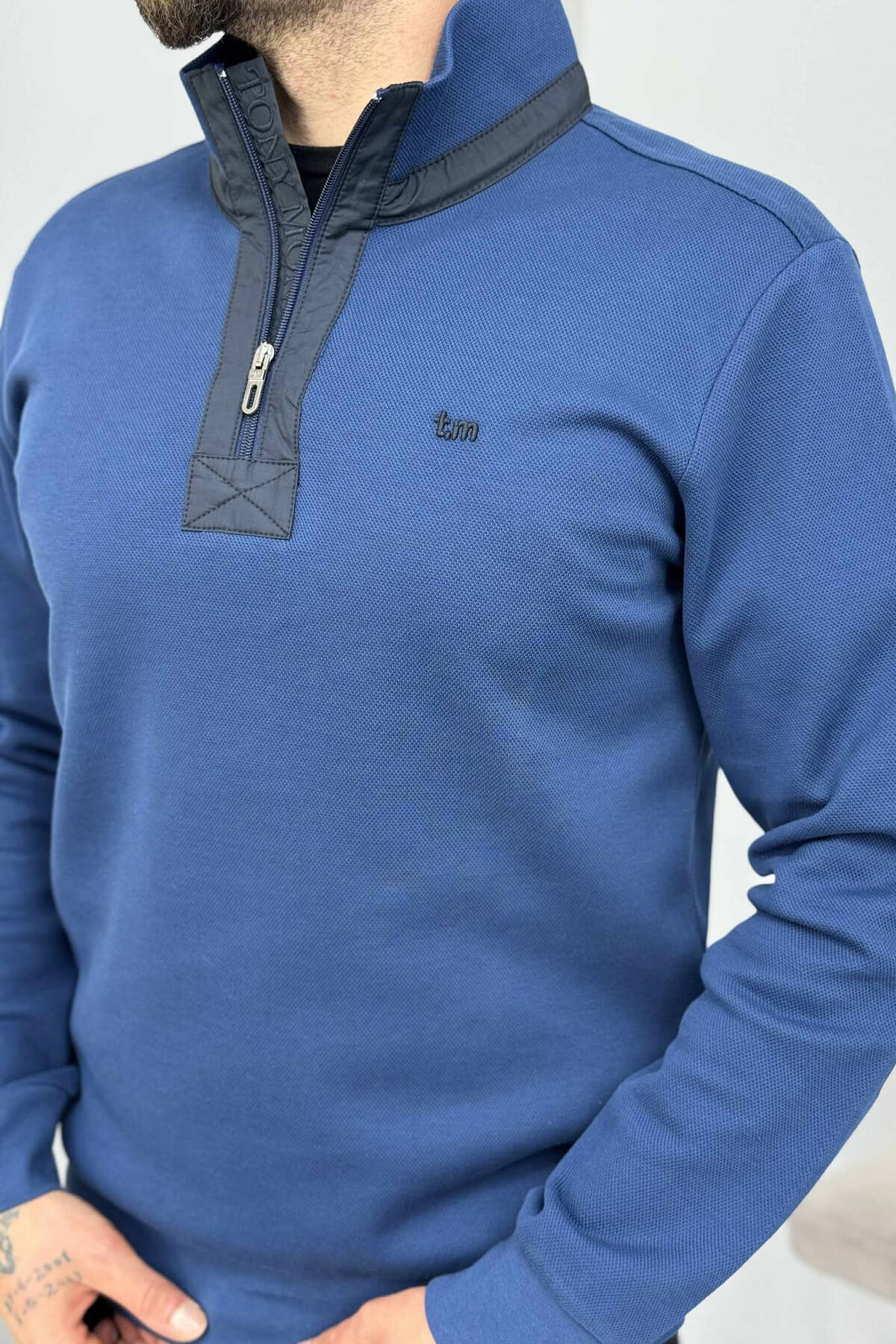 BLUZË NJË NGJYRËSHE ME JAKË ME ZINXHIR PËR MESHKUJ NË NGJYRË BLU